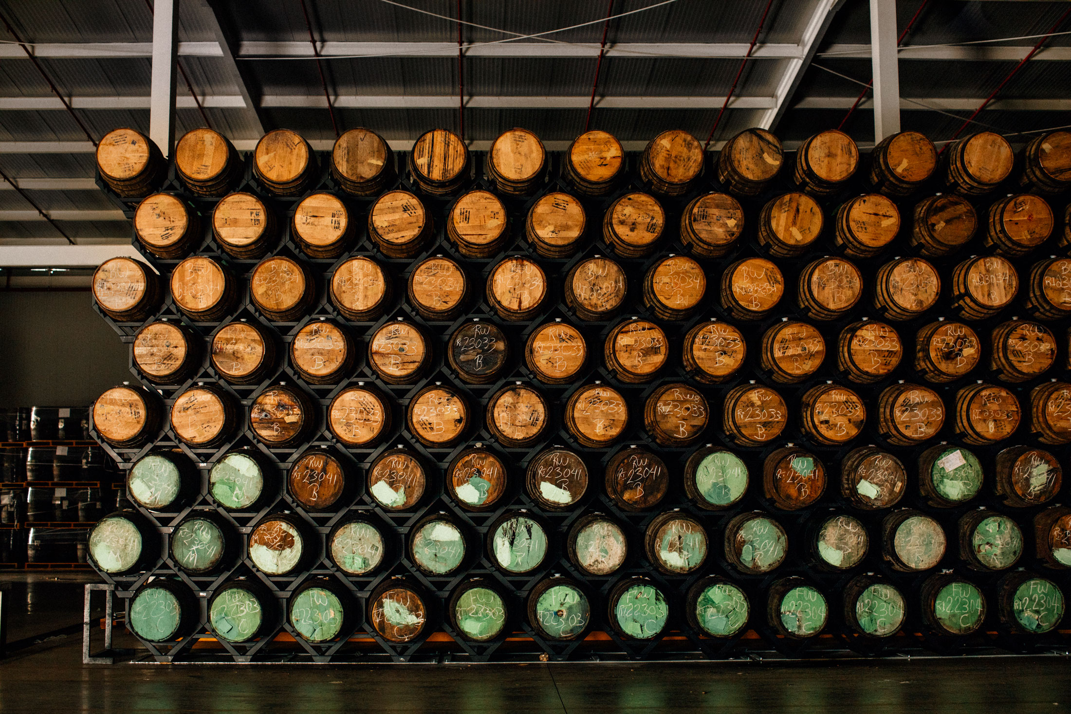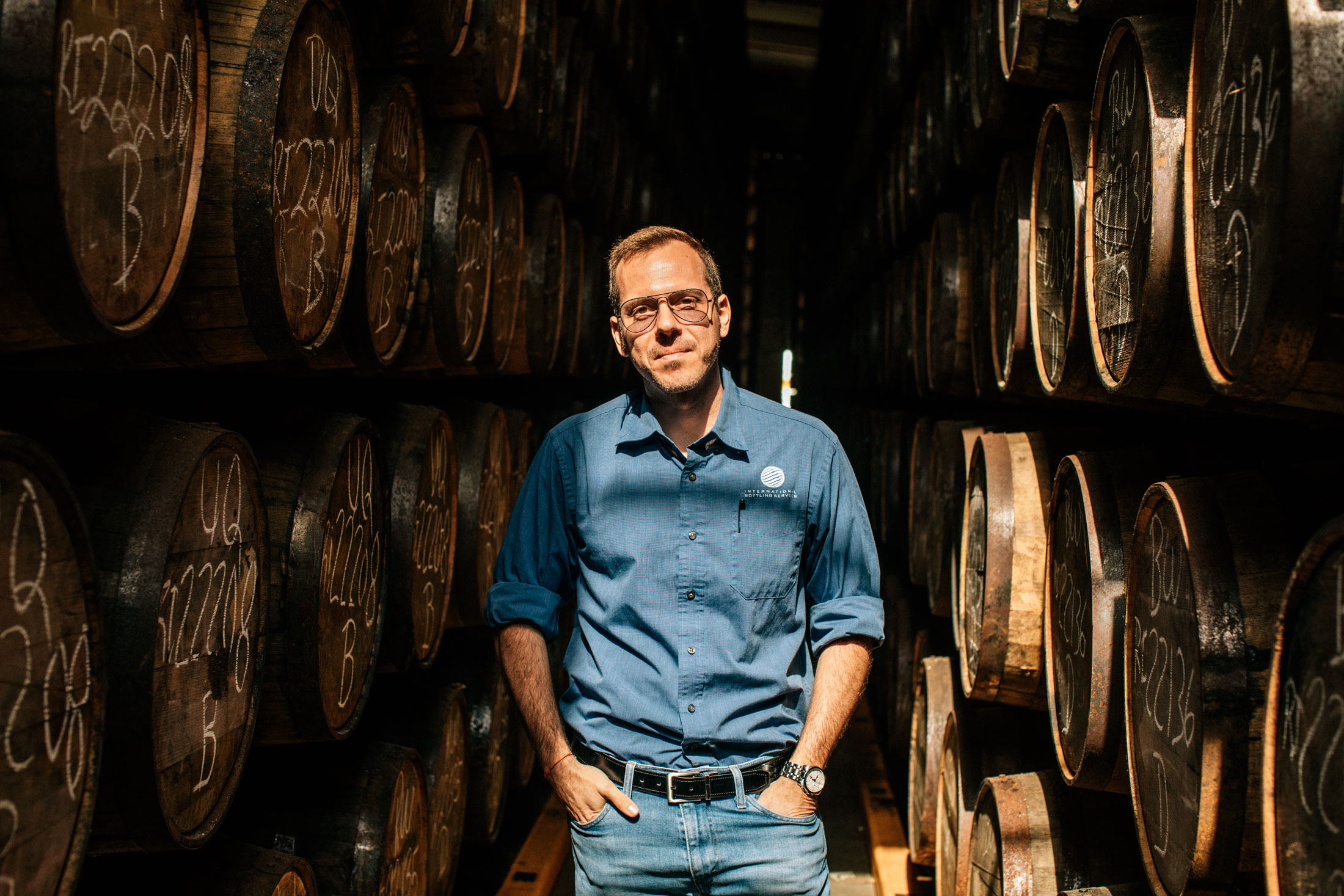 吉安·吉多·阿迪蒂(Gian Guido Arditi)在巴拿马城的Ron Diplomático工厂,站在陈年朗姆酒的木桶旁。