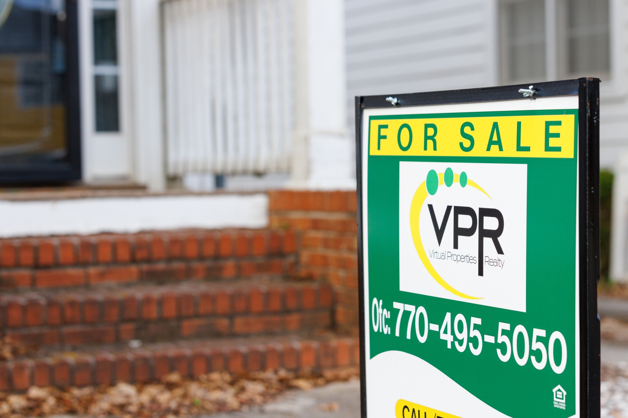 亚特兰大,乔治亚州一所房屋外的“待售”标志。
