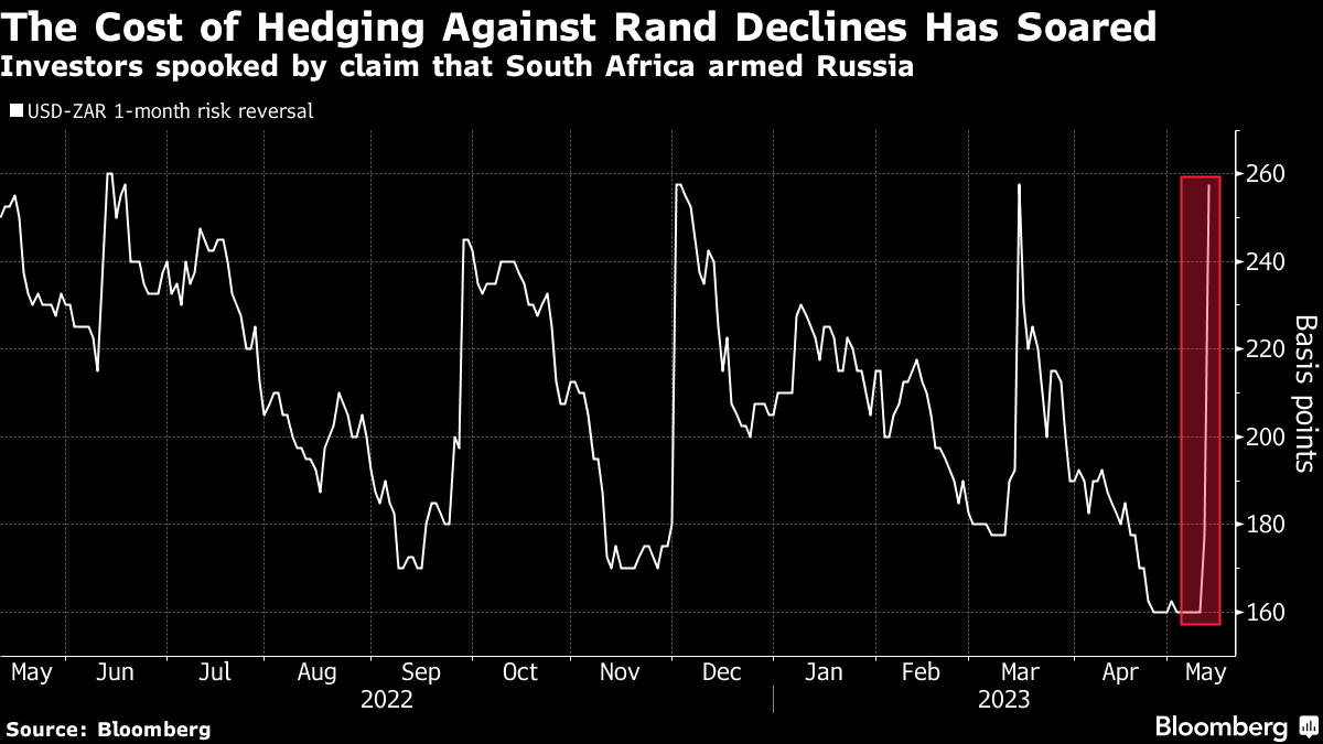 美国驻南非大使鲁宾·布里格蒂表示,俄罗斯一艘受制裁的船只于去年12月在南非海军基地装载武器,这一行为“不可接受”,并将使南非参与美国的非洲增长和机会法案面临风险。兰特汇率创下新低。