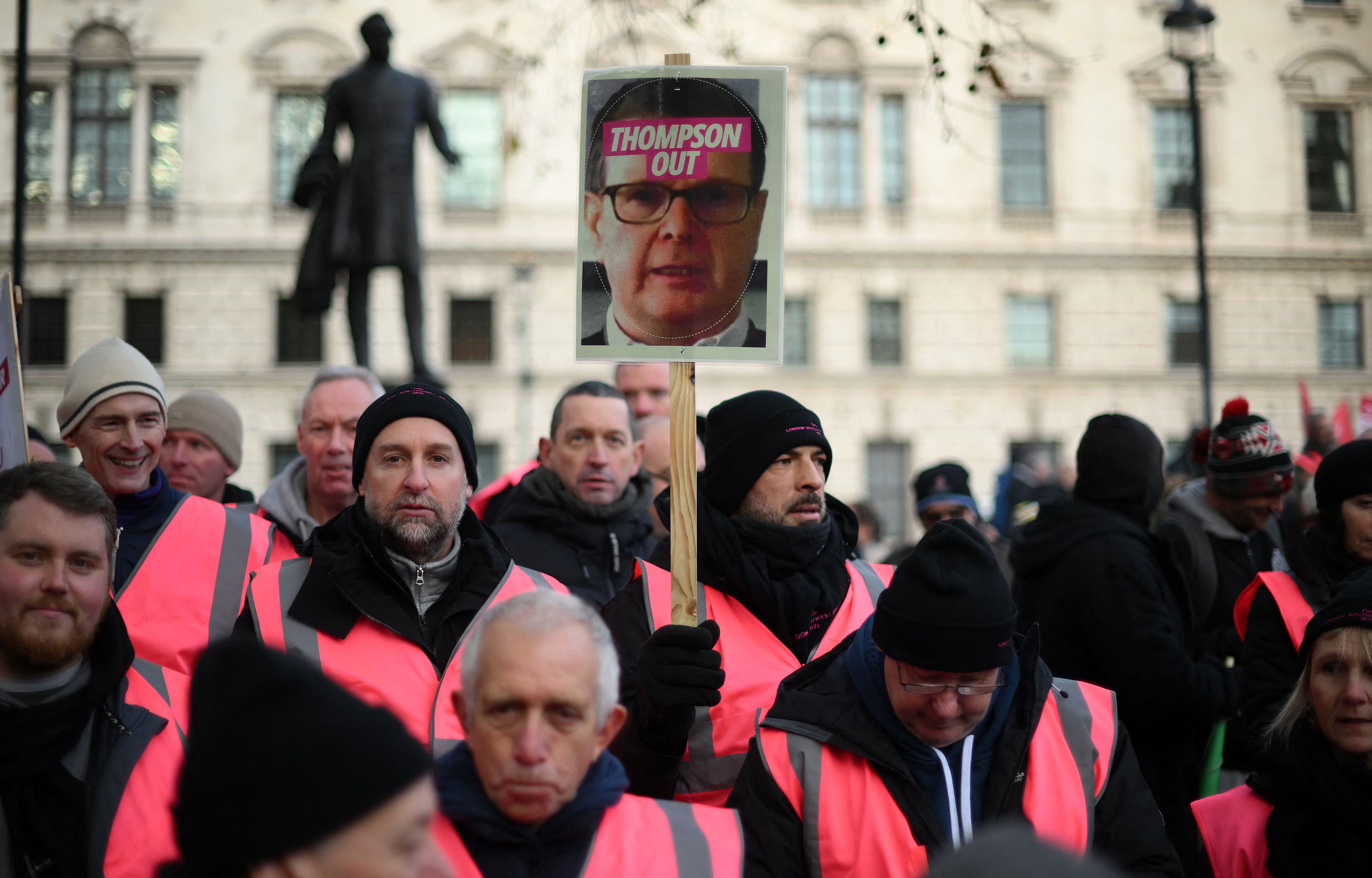 一名示威者举着标语牌,要求在12月9日撤换皇家邮政的首席执行官。