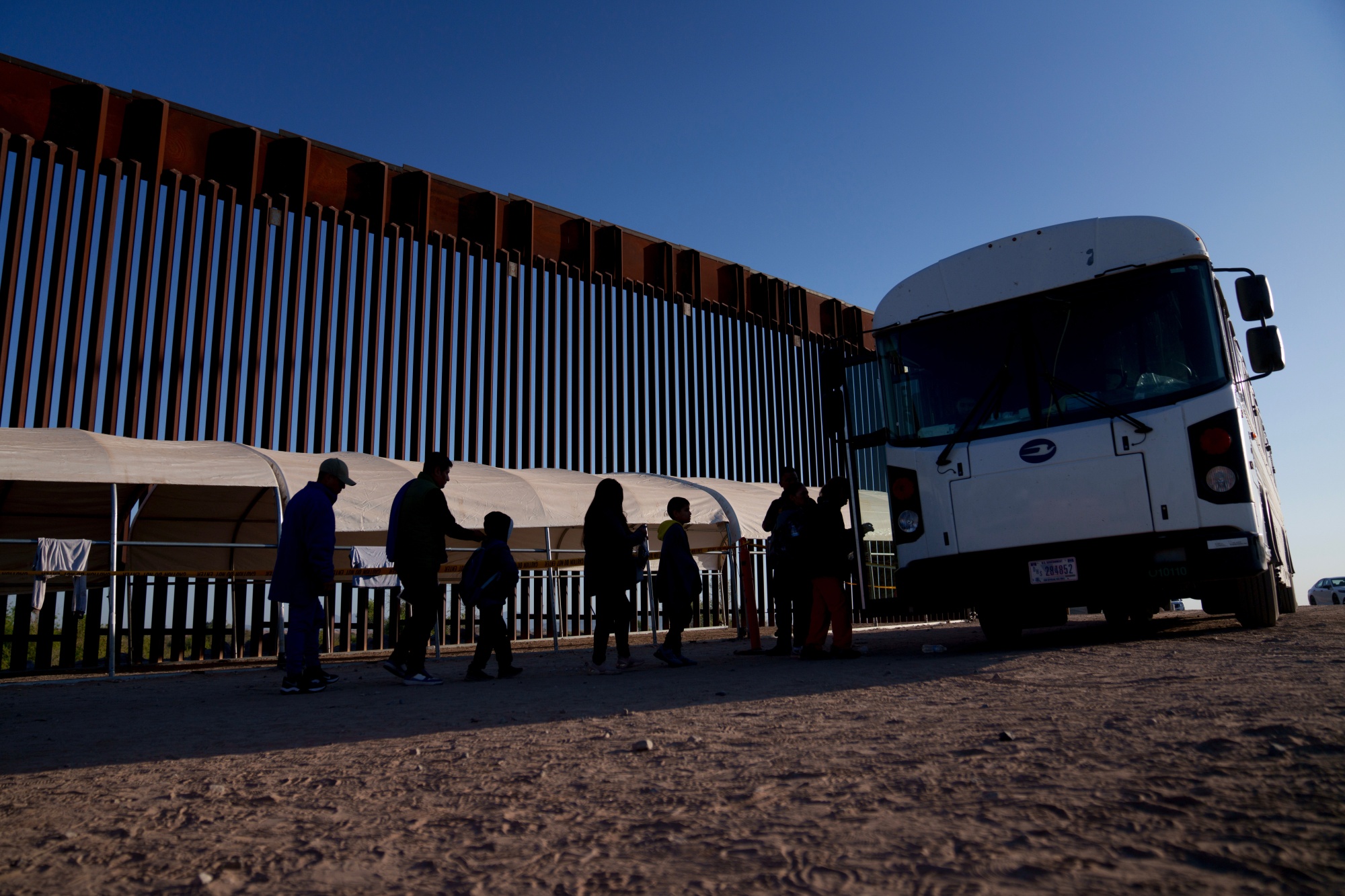在5月11日亚利桑那州尤马市的美墨边境,移民向美国边境巡逻队投降,此前已取消第42条。摄影师:Eric Thayer/Bloomberg阅读更多:纽约市、芝加哥与拜登对抗,移民潮压垮财政
