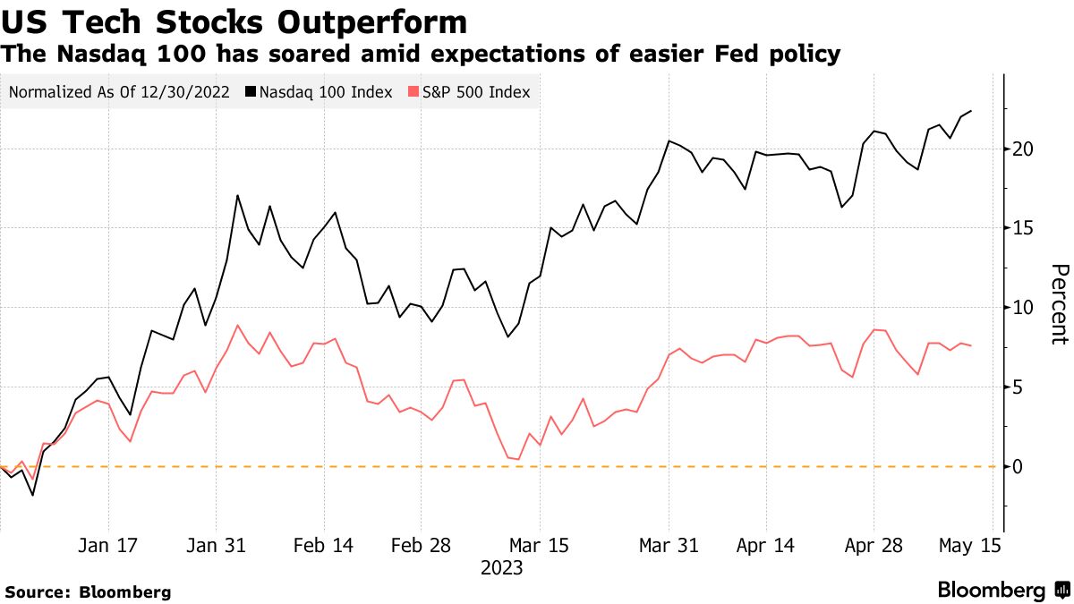 哈特内特去年准确预测到衰退恐慌将引发股市大规模抛售,他警告称,由于高通胀以及低失业率和总统支持率,美国央行不太可能暂停加息。这与彭博智库策略师的看法相似,他们认为科技、媒体和电信股票存在泡沫空间,随着它们“面对长期较高利率和收益前景的现实”,泡沫可能会缩减。