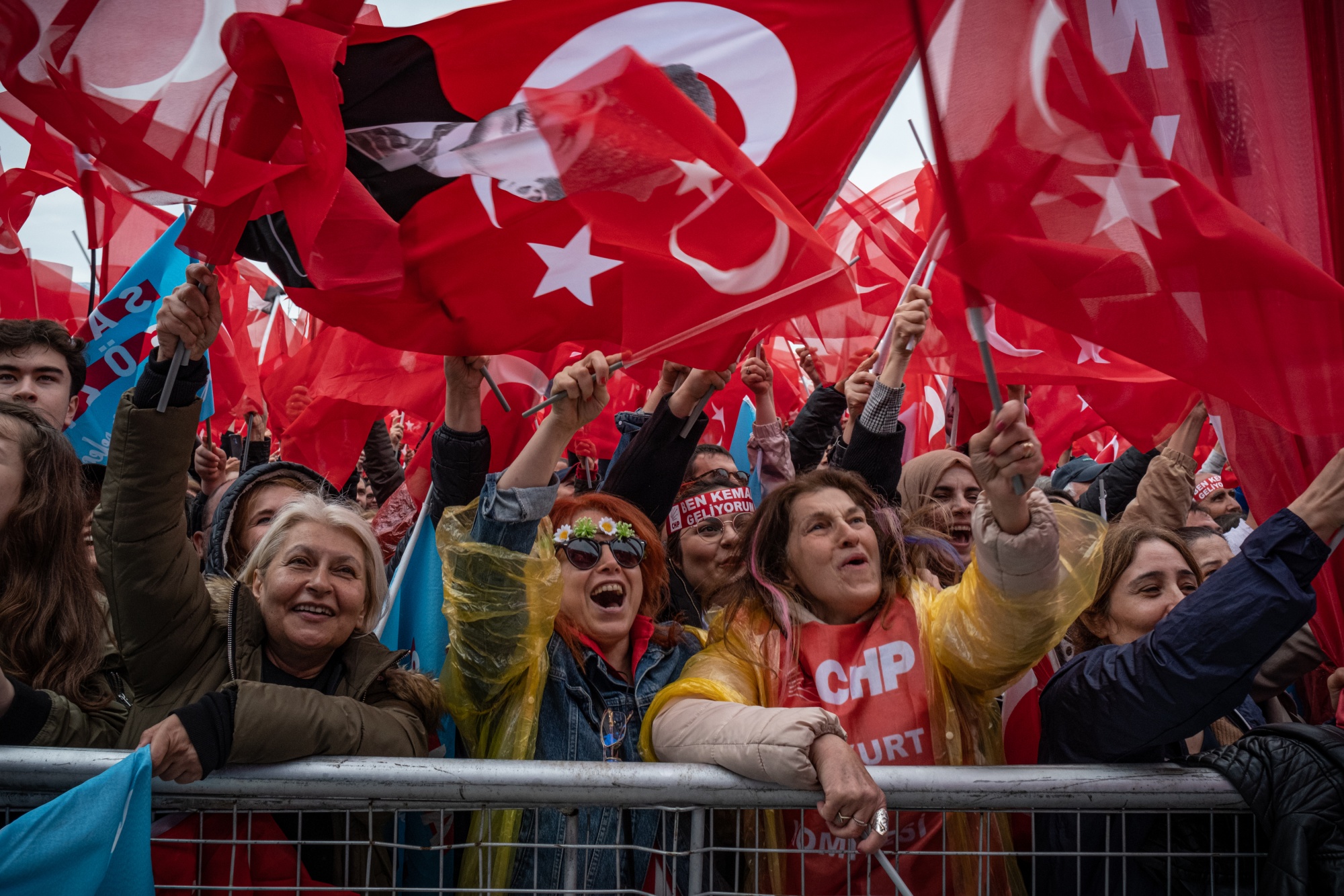 土耳其反对派总统候选人凯马尔·基利奇达罗卢在5月6日伊斯坦布尔的选举集会上的支持者。