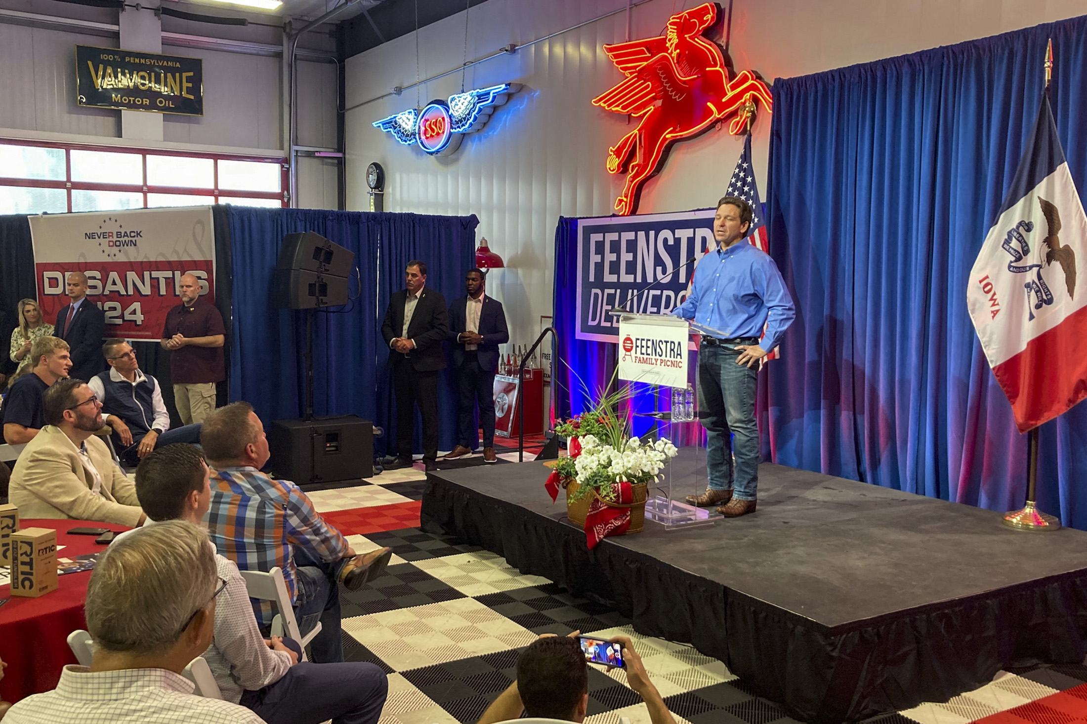 在爱荷华州西北部农村的野餐活动上发言时,这位尚未宣布竞选总统的候选人再次避免提到前总统唐纳德·特朗普的名字。但德桑蒂斯明显在与他党派事实上的领袖的领导风格进行直接对比,后者因天气恶劣取消了自己在得梅因的集会。