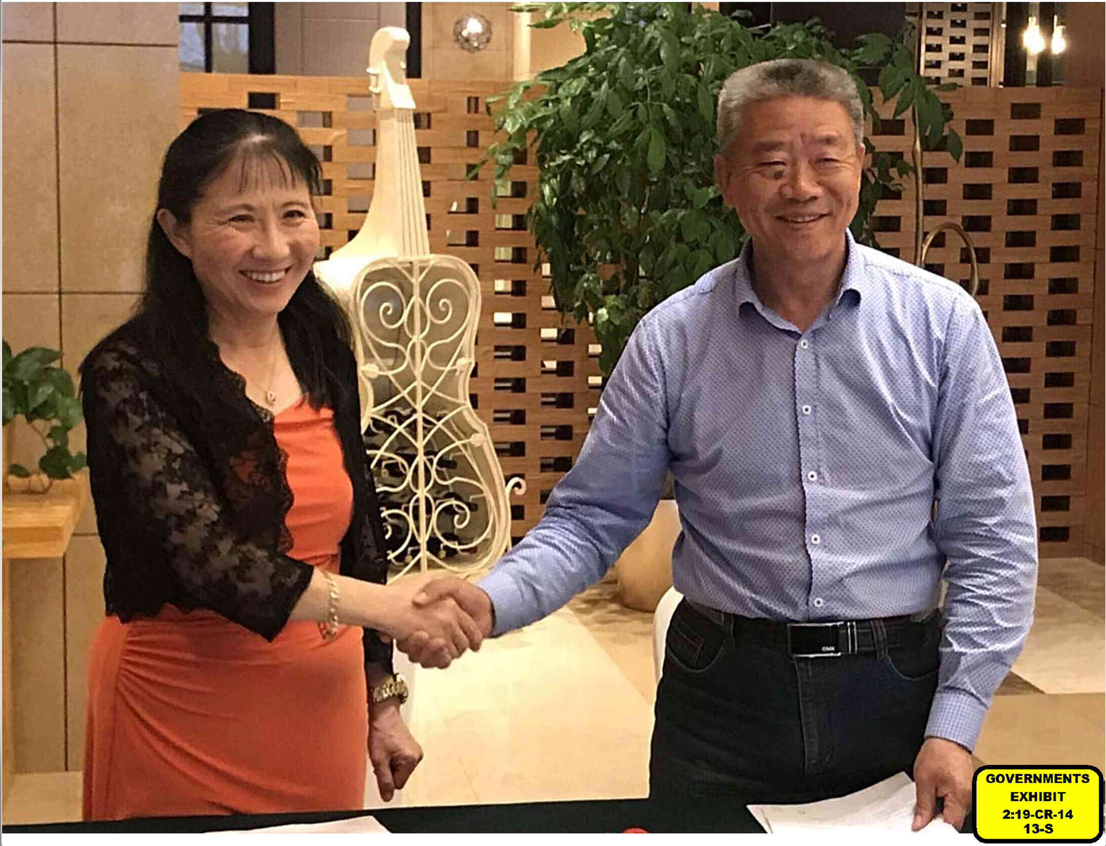 她签约加入许氏公司后,与许在一起的这张照片被用作她审判中的证据。来源:美国田纳西州东区地方法院,格林维尔***
