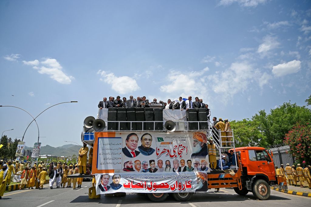 巴基斯坦执政联盟支持者聚集在伊斯兰堡最高法院附近,时间为5月15日。