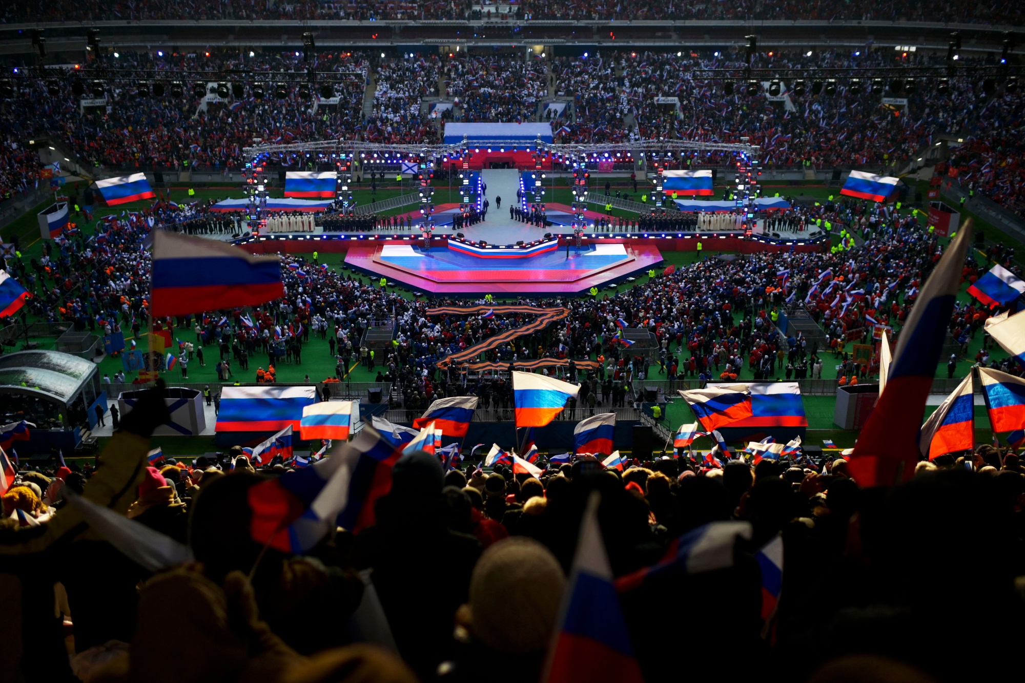 总统弗拉基米尔·普京在莫斯科卢日尼基体育场参加一场致力于“祖国保卫者节”的音乐会,日期为2月22日。摄影师:纳塔利娅·科列斯尼科娃/法新社/盖蒂图片社尽管根据自战争以来实施的严格审查法律,检举者在刑事起诉中所占比例不到十分之一,但根据跟踪这一趋势的律师们所说,检举者一直是导致被定罪、罚款和失去工作的案件的核心。