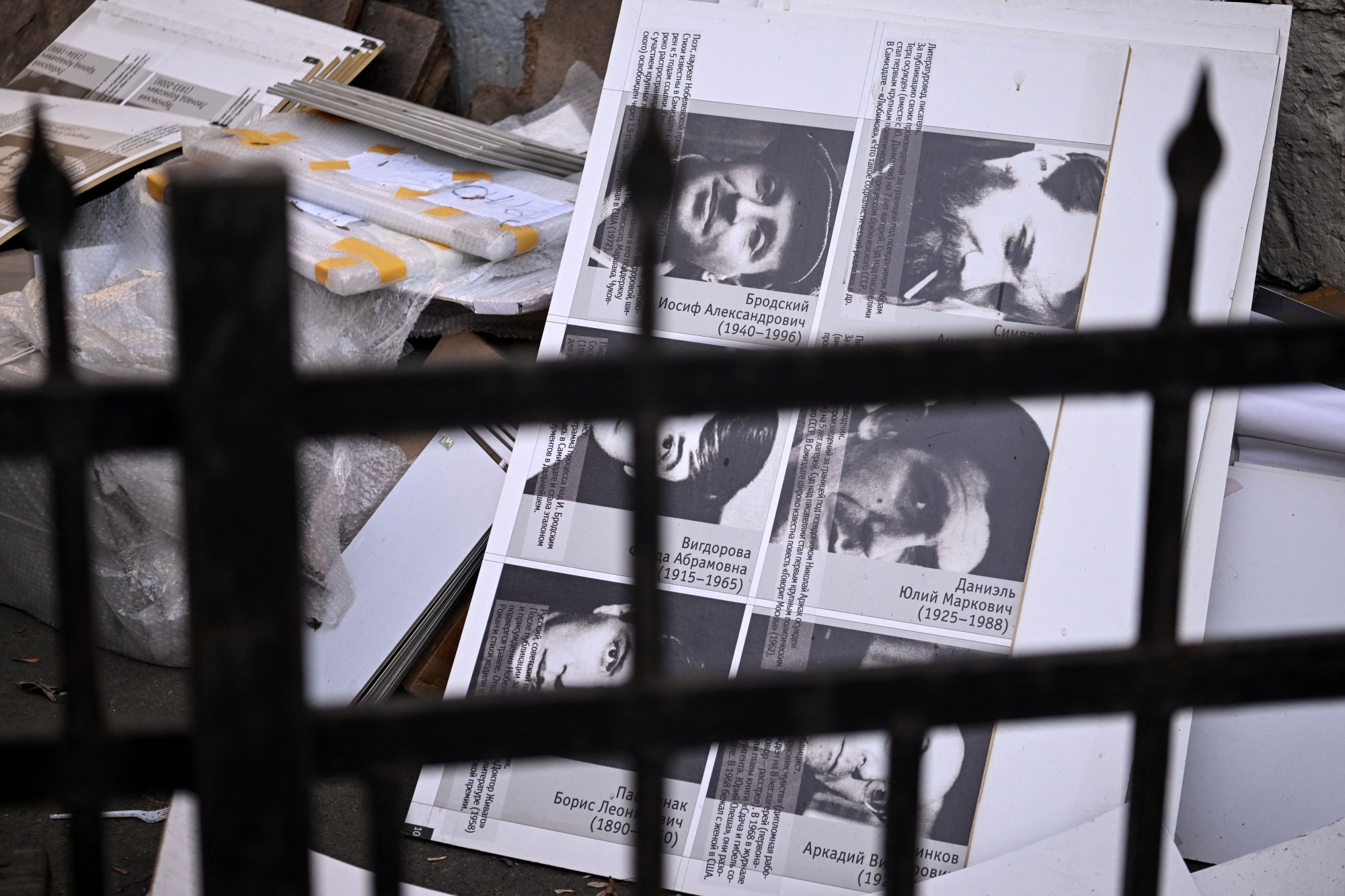 苏联人权活动家的肖像,包括诺贝尔奖得主约瑟夫·布罗茨基和鲍里斯·帕斯捷尔纳克,被丢弃在莫斯科安德烈·萨哈罗夫博物馆和公共中心外的垃圾场上,日期为4月14日。当局迫使该中心在镇压中关闭。摄影师:基里尔·库德里亚夫采夫/法新社/盖蒂图片社在培养该国外交官的精英国家管理的莫斯科国际事务学院,管理层迅速与一家在战争开始后不久出现的电报频道划清界限,该频道上的学生报道了被认为忠诚度不够的教职人员。但报道并没有停止。
