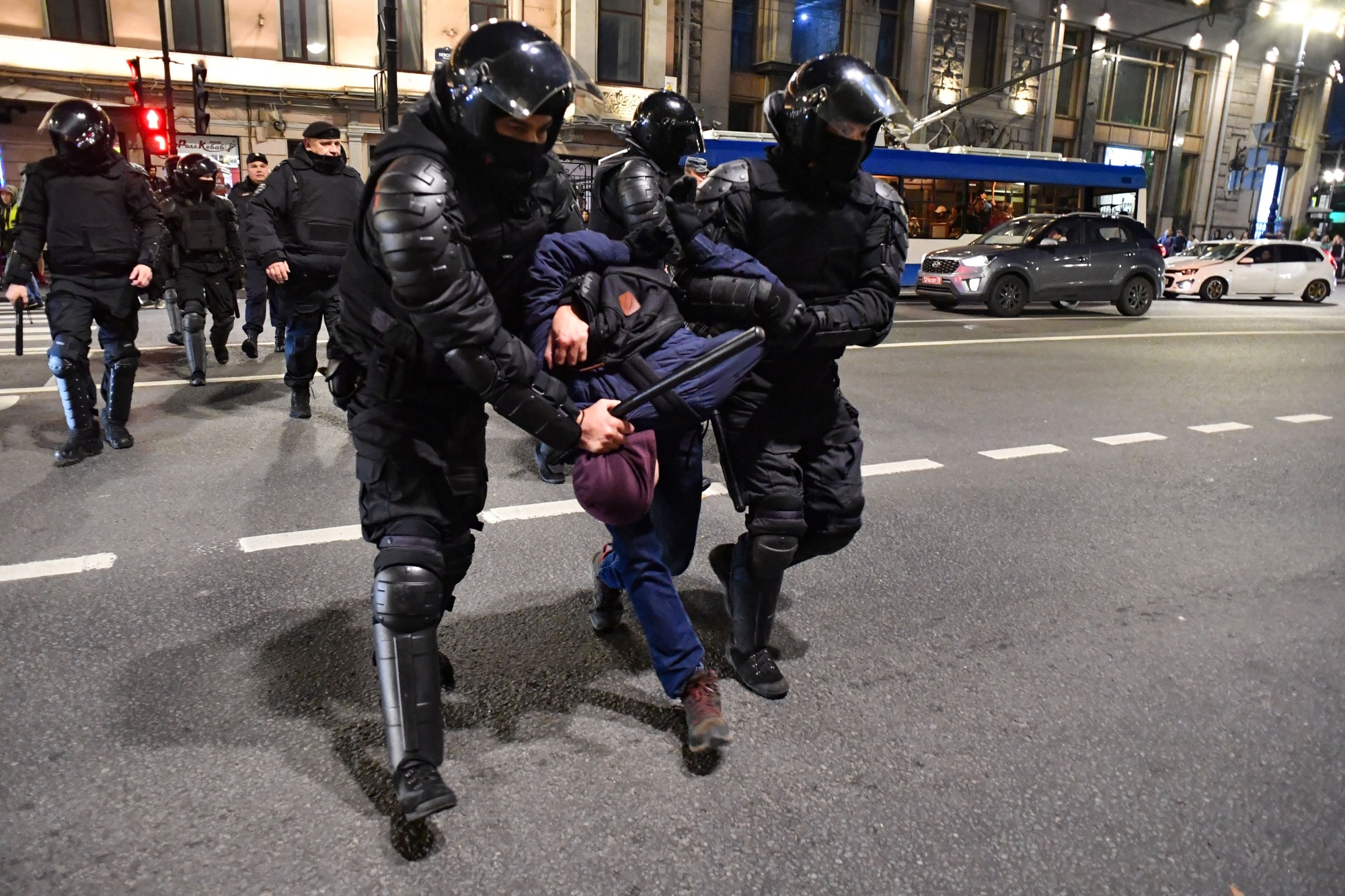 警察在2022年9月21日圣彼得堡逮捕反对普京总统宣布的部分动员的示威者。摄影师:OLGA MALTSEVA/AFP她说,她会连续两天时间观看YouTube上被贴上“外国代理人”标签的媒体,并在看完后写下她对出现在其中的人的评论。通常情况下,她不得不写多篇评论,因为官员们要么无视它们,要么拒绝采取行动。