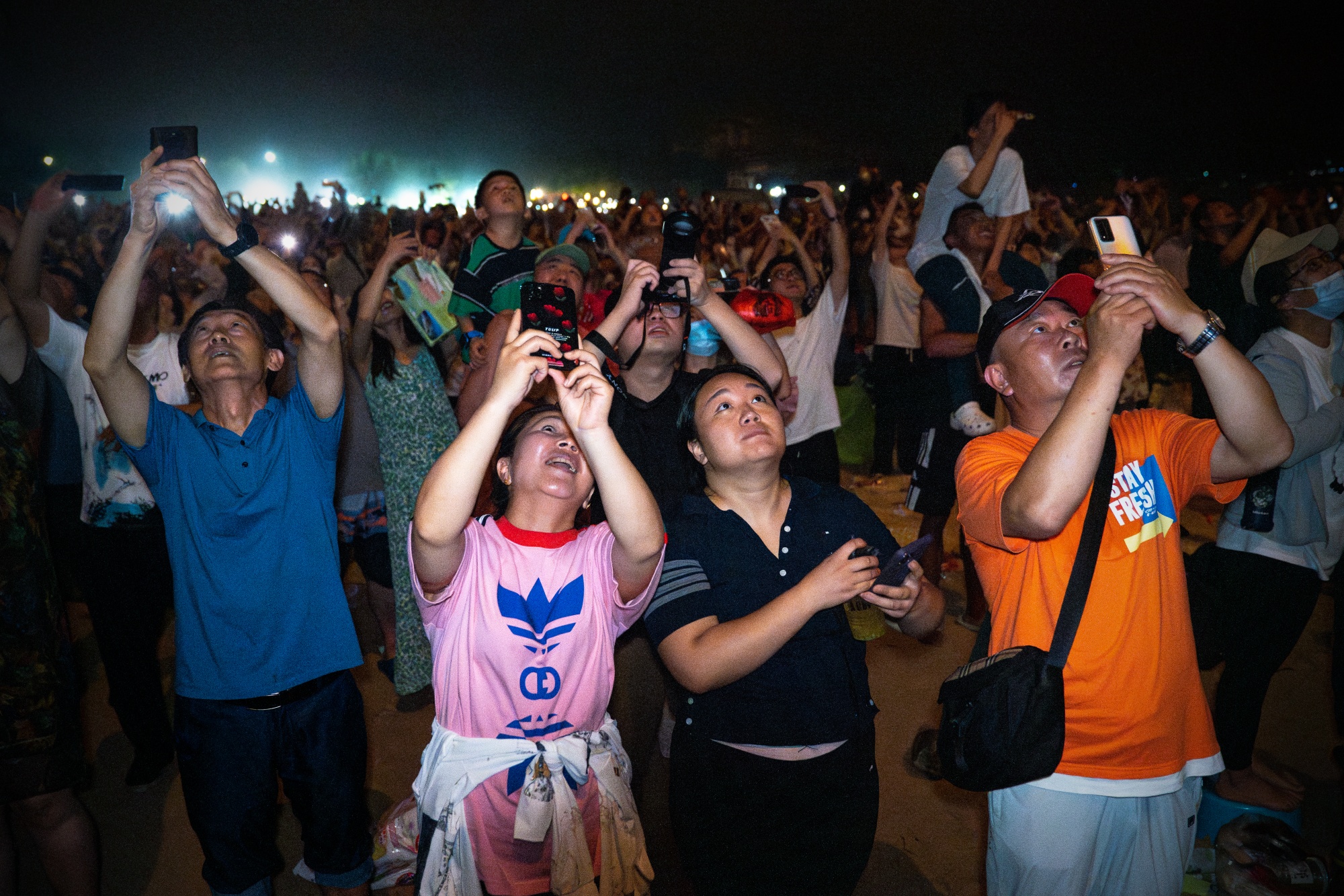 这群人包括几个带着小孩和青少年的家庭,他们前来观看长征七号Y7火箭搭载天舟六号货运飞船发射,该货运飞船将前往中国的天宫空间站。