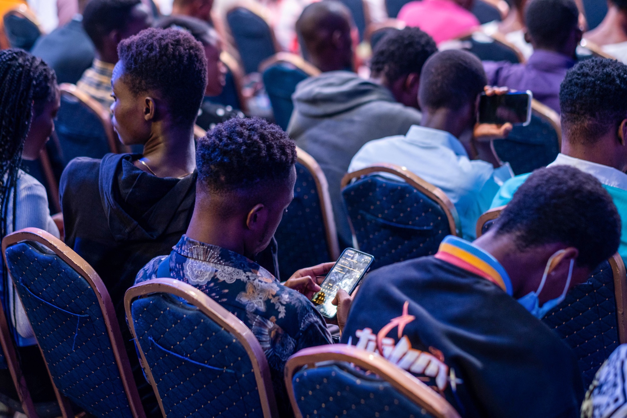 与会者在尼日利亚拉各斯的一次会议中使用智能手机。