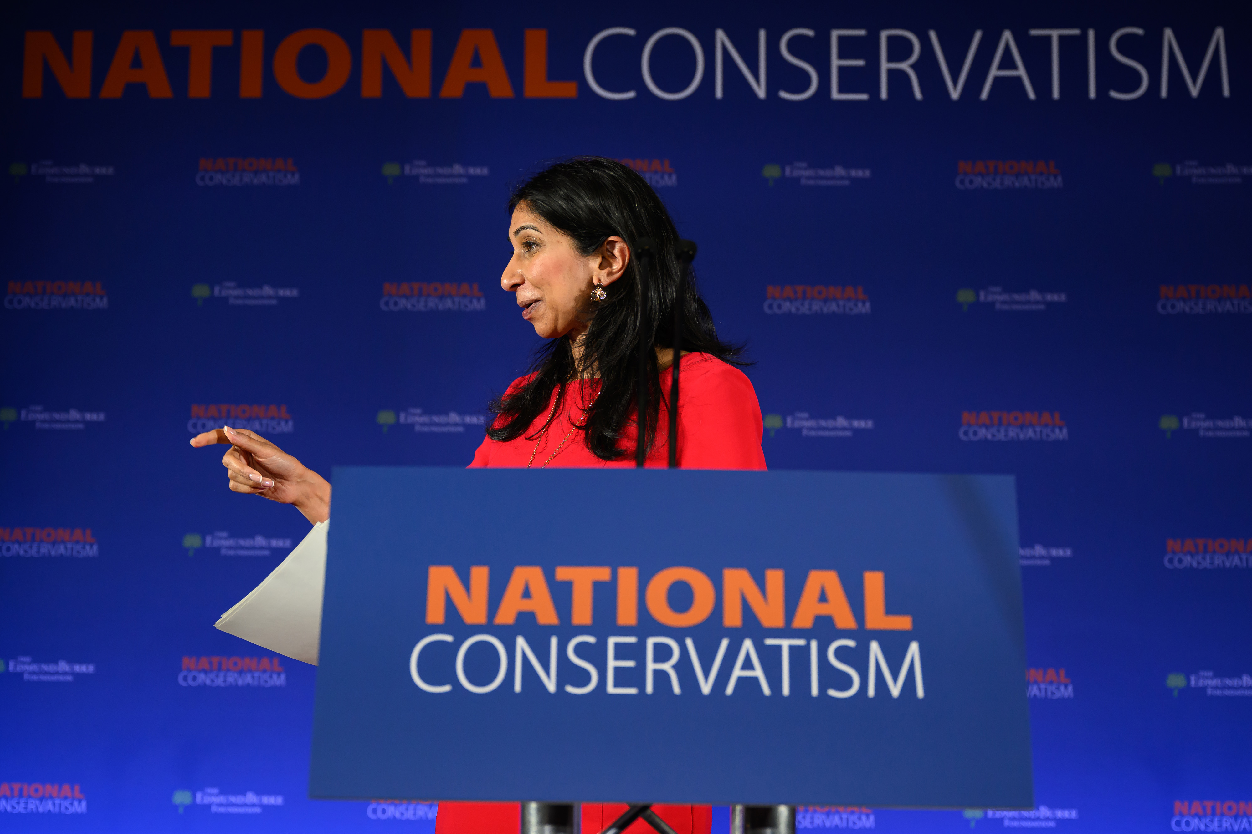 布拉弗曼——保守党右翼的宠儿——警告称反对高水平移民,抨击“专家和精英”,并将身份政治定性为“不自由主义”,称保守主义“与政治正确毫无关系”。她在NatCon UK会议上的一场40分钟演讲结束时获得了全场起立鼓掌。