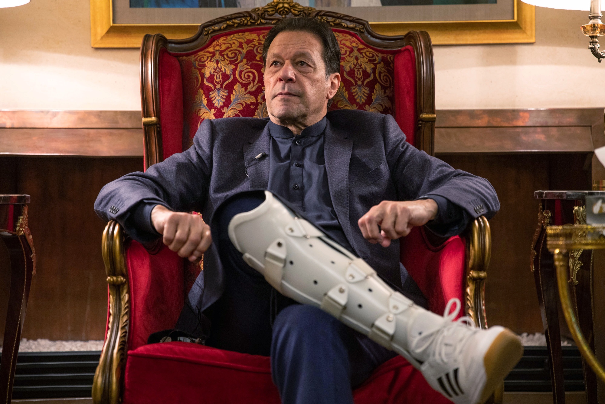 伊姆兰·汗在巴基斯坦拉合尔因腿部受伤,于1月24日。摄影师:贝齐·乔尔斯/彭博社汗还声称——再次没有提供证据——夏里夫的政府和一位高级将军策划了去年11月在街头抗议活动中的枪击事件,导致他腿部受伤。这一指控也遭到了驳斥。