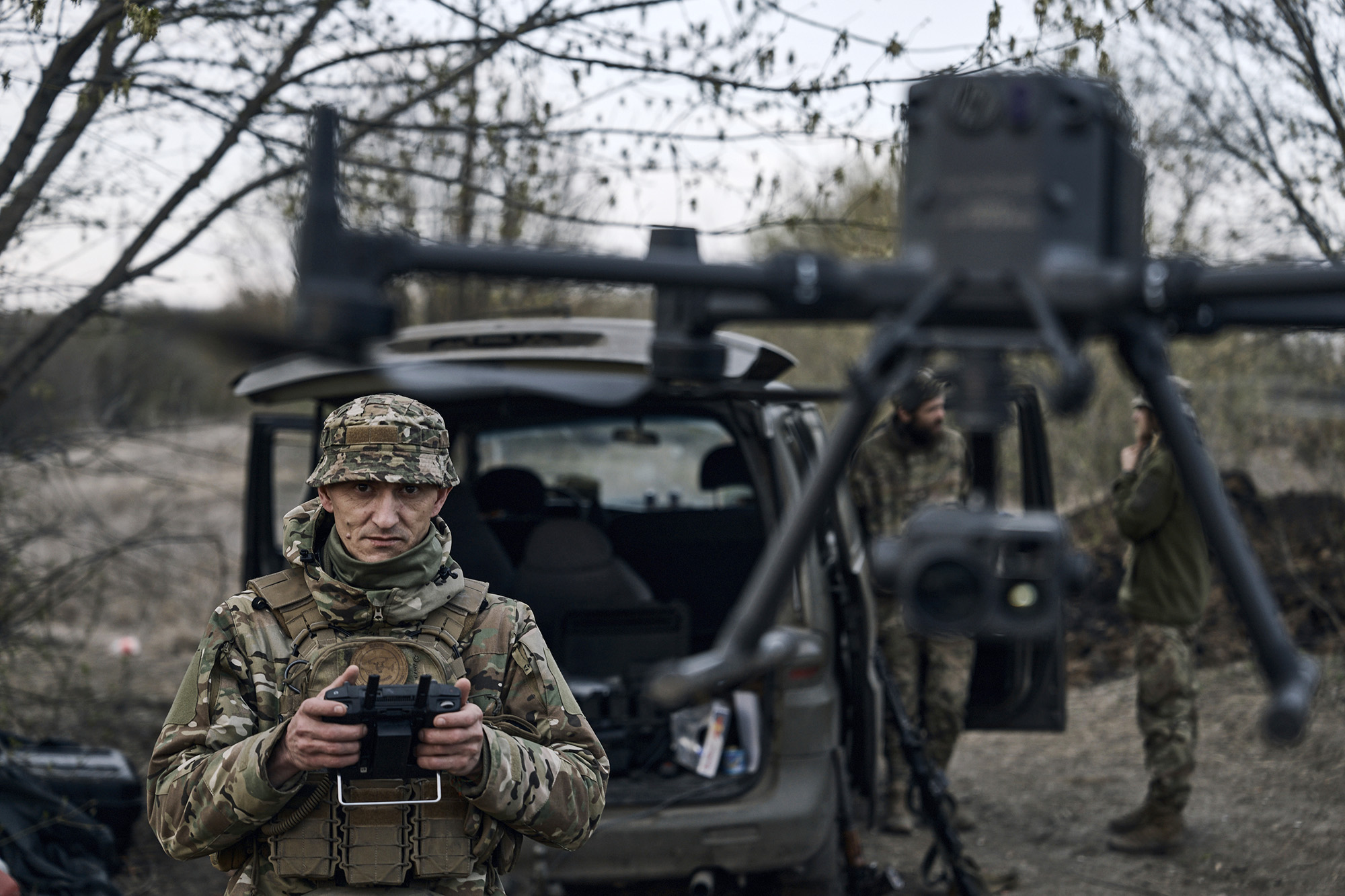 一名乌克兰士兵在顿涅茨克地区的巴赫穆特发射一架无人机。来源:Libkos/AP### 调整坦克和部队