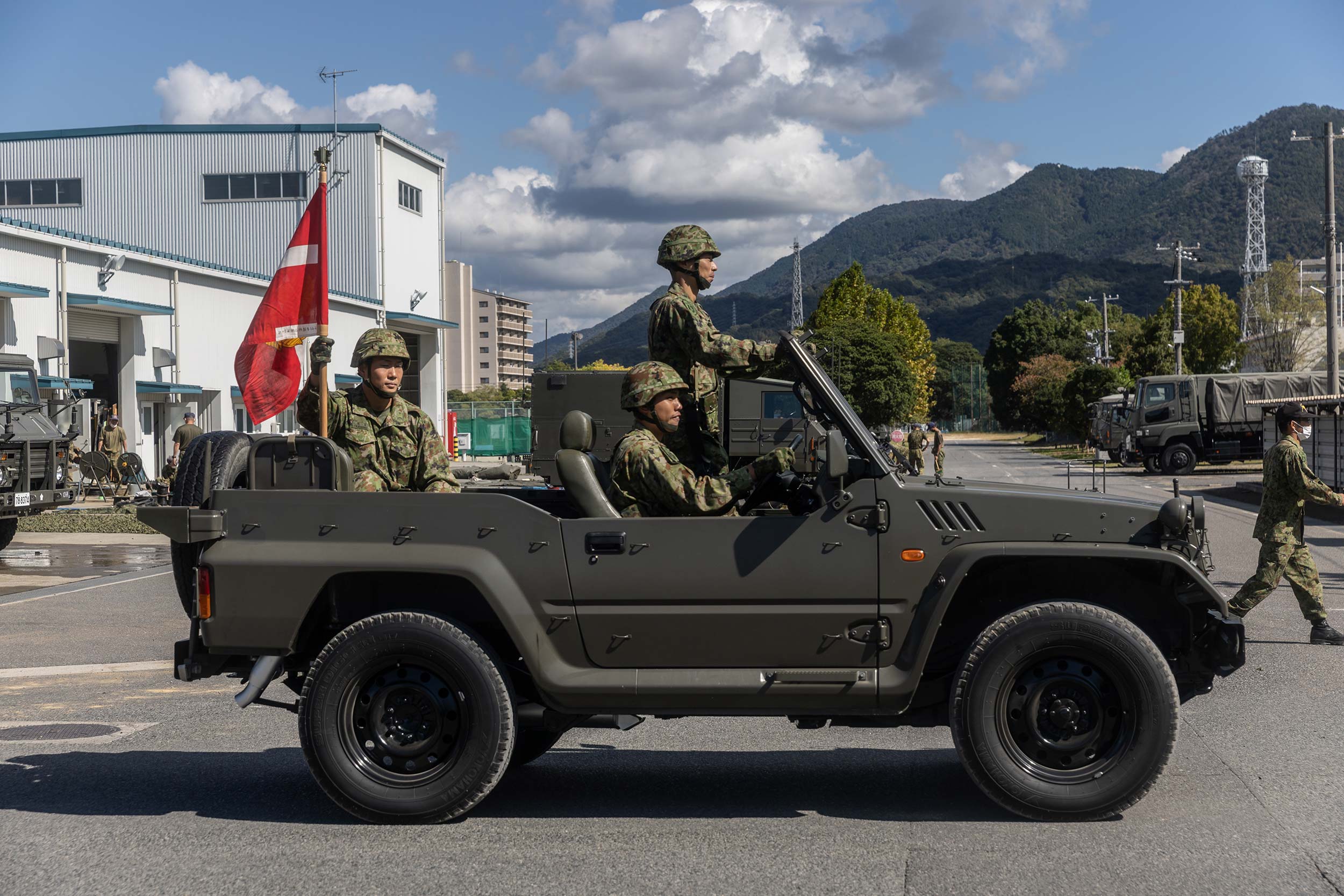 在广岛县的自卫队营地里的士兵。
