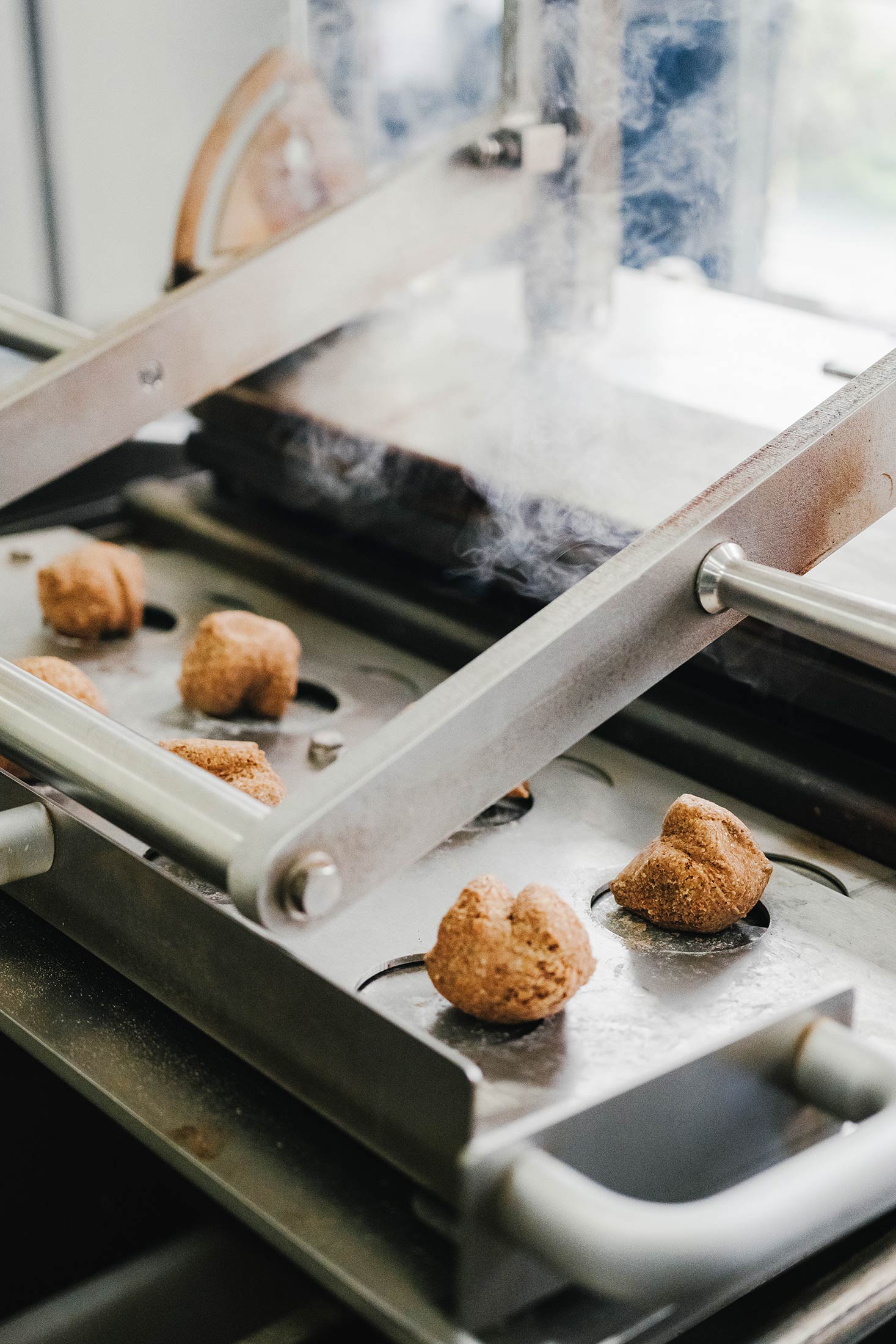 一名Good-Edi工人在每个面团球被压制和烘烤之前测量并搓揉。摄影师:Sarah Pannell for Bloomberg BusinessweekHutchins表示,虽然有些人希望杯子更甜,但这取决于每个人的口味。“我们故意没有让它变甜,因为我们不想影响咖啡的味道,”Hutchins说。Good-Edi还提供了一款涂有巧克力的杯子,并计划很快推出更多口味更多样的选项。