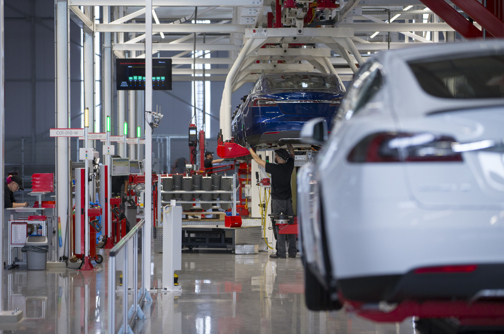 特斯拉Model S汽车在荷兰蒂尔堡的装配线。摄影师:贾斯珀·朱宁知情人士称,特斯拉公司高管代表团与印度讨论了可能的本地零部件采购和激励措施,但没有提出在该国建造汽车的计划,这是在与政府进行了一年长时间的僵局后重新展开对话的,这家电动汽车制造商。僵局。
