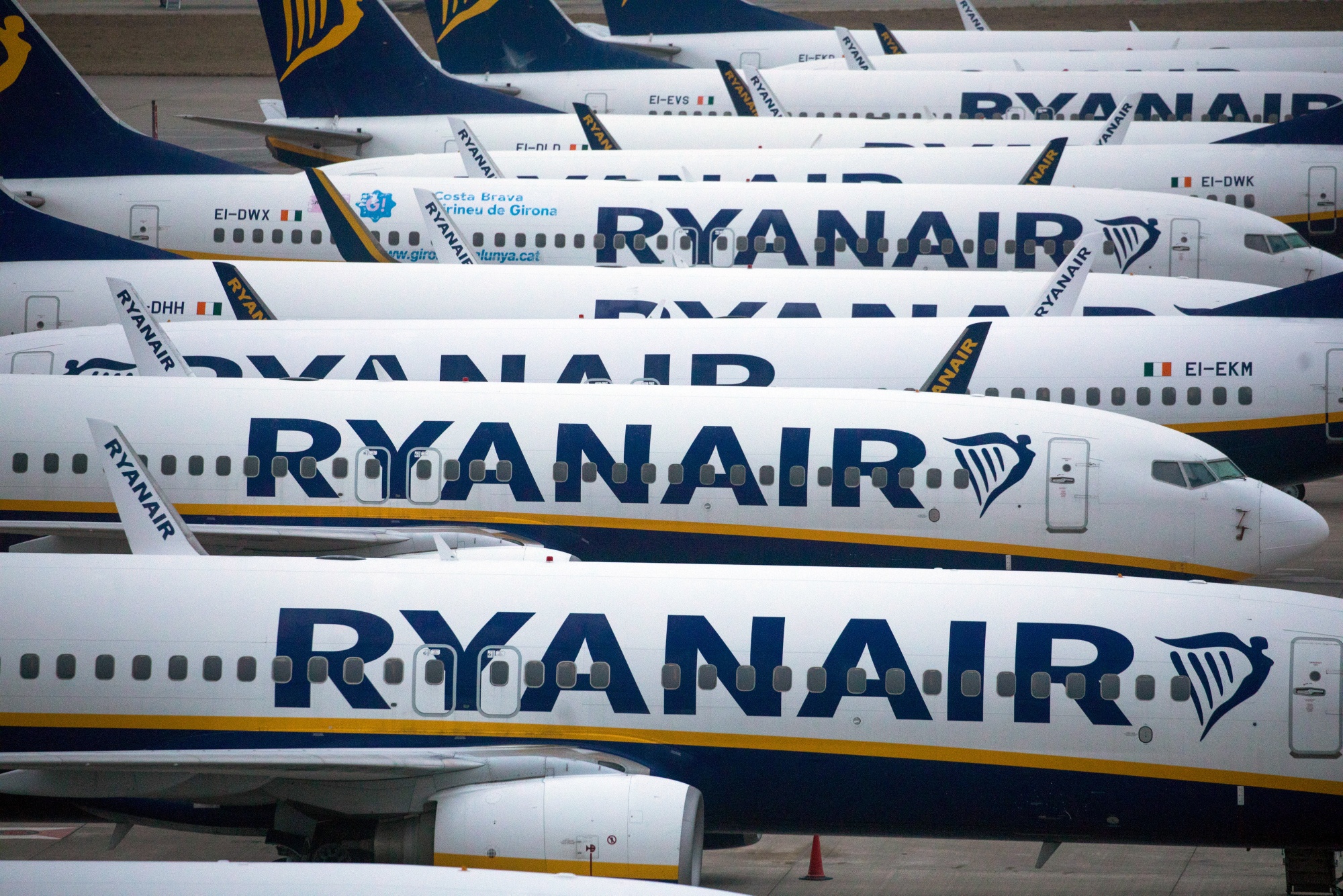 瑞安航空控股有限公司的飞机停在伦敦斯坦斯特德机场。