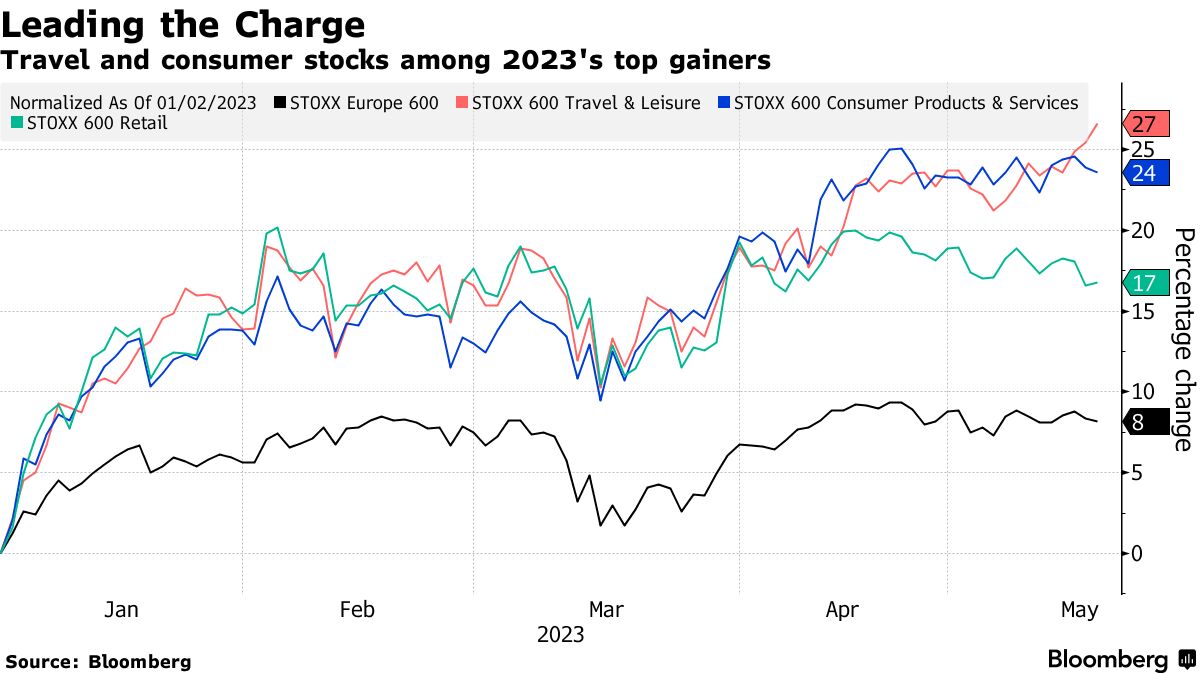 摄影师:克里斯·拉特克利夫/彭博社从廉价航空公司瑞安航空控股有限公司到服装和食品连锁店马克斯和斯宾塞集团有限公司,本周的收益将更多地揭示今年在斯托克斯欧洲600指数中领跑的面向消费者公司的健康状况 —— 以及顾客的钱包。