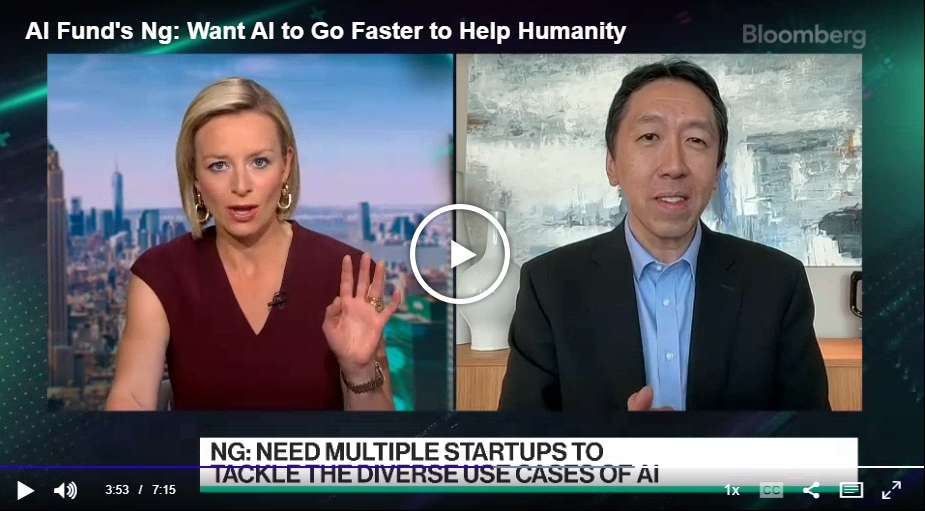 观看Bloomberg Technology对 Andrew Ng 的采访,他是 Landing AI 和 Coursera 的创始人。### 充分充电
