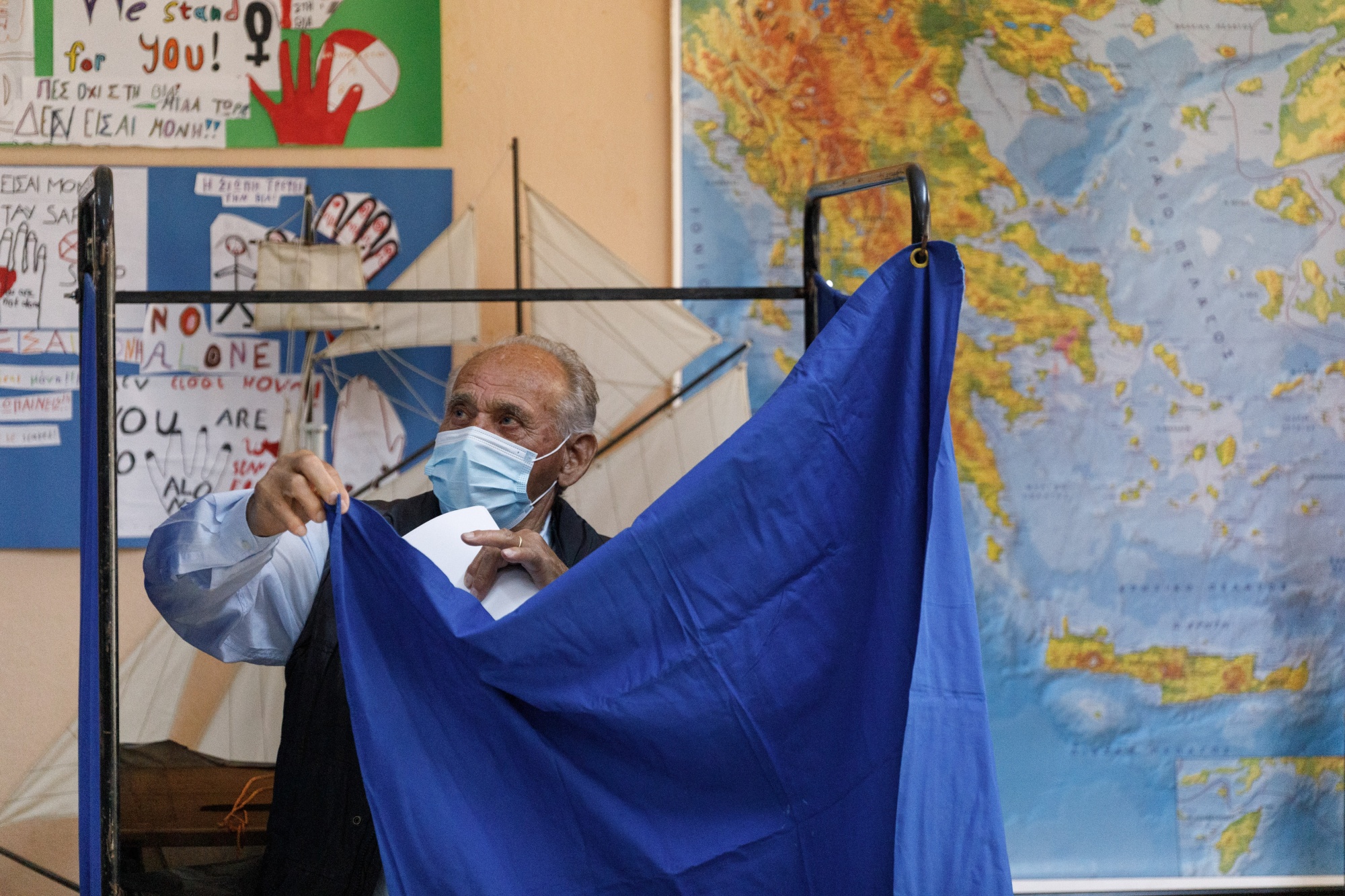一个选民在希腊雅典的一个投票站,5月21日。