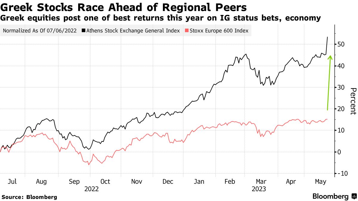 雅典证券交易所综合指数上涨了多达7.5%。希腊债券上涨,使得10年期债券收益率降至3.82%,为去年12月以来的最低水平。穆迪投资者服务表示,选举结果是对信用的积极影响。