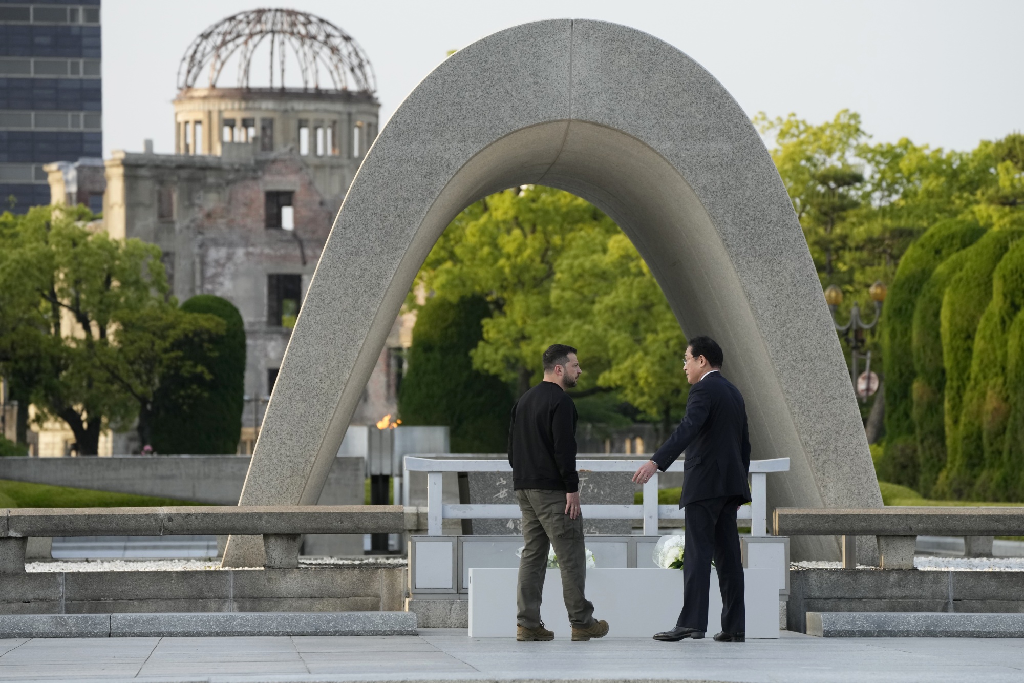 尽管俄罗斯威胁要使用原子弹对付邻国,但日本首相岸田文雄在结束讲话时表示,核战争中没有赢家,他在一座建于1945年广岛原爆地点的公园发表了闭幕讲话,当时有大约14万人死亡。泽连斯基参观了公园内一个致力于纪念那次轰炸的博物馆,并表示城市废墟的景象让他想起了被围困的乌克兰城市巴赫穆特。