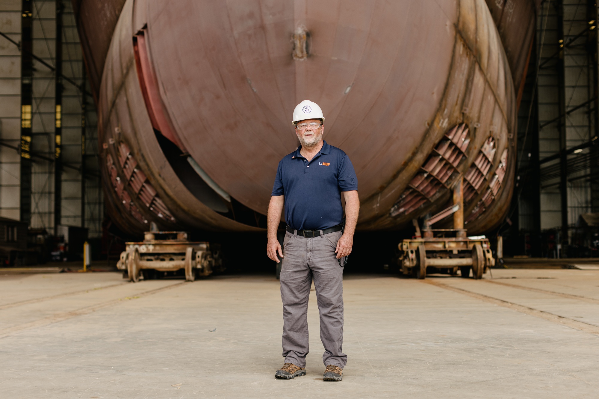 Eco Edison 项目经理惠特·卡特站在正在建造中的船前。摄影师:布莱恩·塔诺斯基/彭博社该公司首席执行官加里·舒斯特,他的虾渔民父亲于1960年创办了公司,希望风电行业继续增长。“这让卡真人继续工作,”他说。