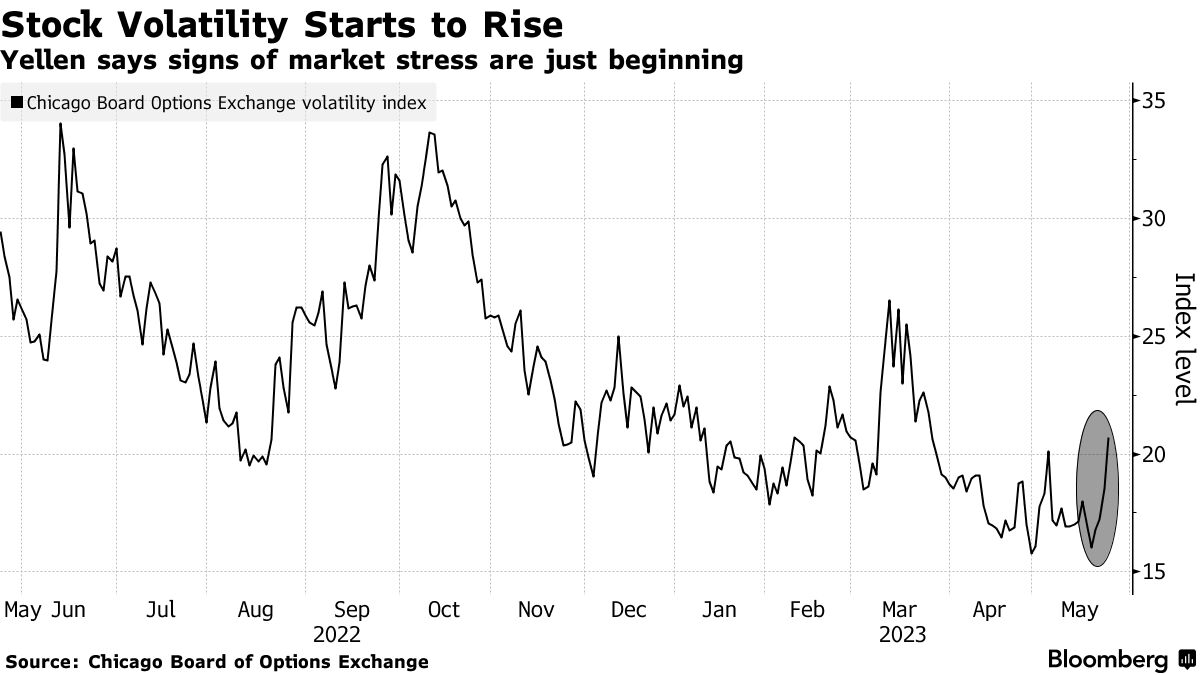 投资者已经显示出越来越担忧的迹象,截至纽约时间上午11:11,美国股市标普500指数下跌了0.9%,此前一天下跌了1.1%。在国债市场上,投资者要求购买在政府被视为最有违约风险时到期的票据时支付更高的溢价。到期日为6月1日和6月6日的证券利率超过了6%。