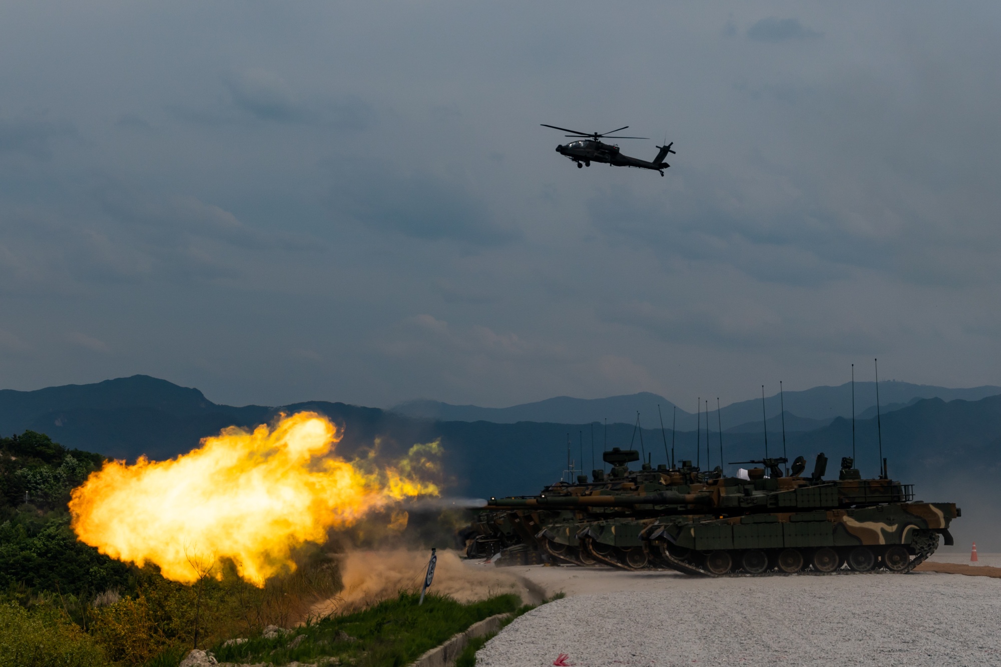 一辆韩国坦克在坡川与美国军队进行联合实弹演习中开火。摄影师:SeongJoon Cho/Bloomberg此次活动旨在更好地准备这两个盟国共同应对朝鲜加剧的挑衅,韩国军方此前表示。。