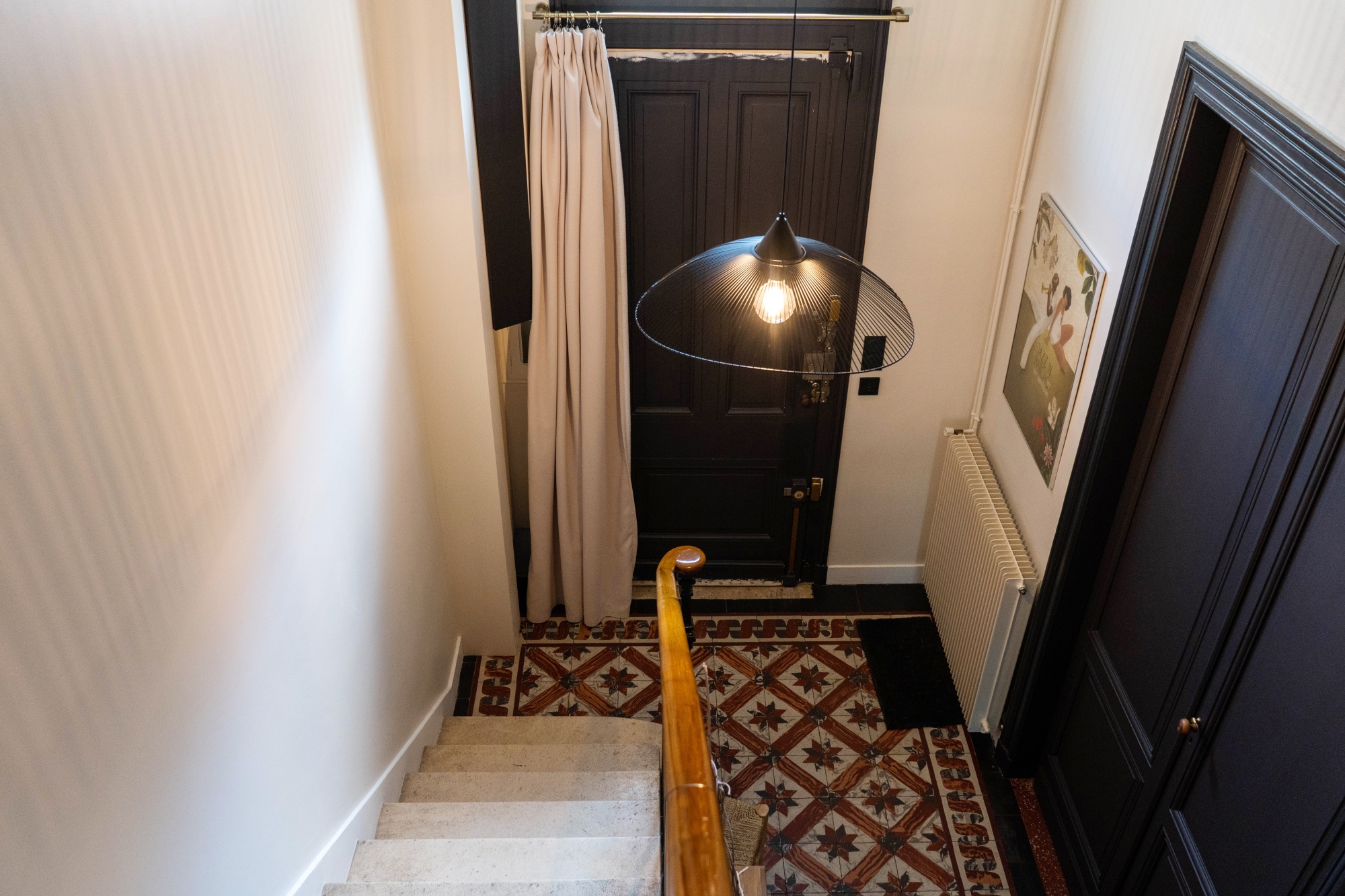 传统上,前门外面有一道外帘,用来保护木材免受雨水侵蚀。摄影师:Nathan Laine/Bloomberg随着这种住宅类型开始主导该市的建筑产出,échoppe设计进一步扩展,以更多地吸引中产阶级客户。建筑商有时会建造一个额外的楼层,卧室只面向后面 —— 创造出在街道一侧看起来仍然像小屋的房屋,但实际上在后面有着宽阔阳台的层次。