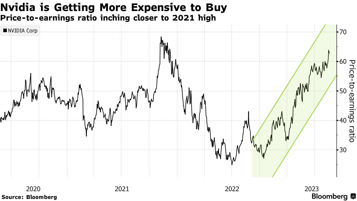 在英伟达股价今年翻倍,将其市值提升至7590亿美元后,投资者面临着很大的风险。该公司的半导体用于驱动人工智能应用的计算机,已成为在OpenAI的ChatGPT取得成功引发的投资者狂热中获得曝光的最受欢迎方式之一。尽管其核心市场个人计算和数据中心的情况仍然严峻,但该股票今年在标普500指数和纳斯达克100指数中表现最佳。