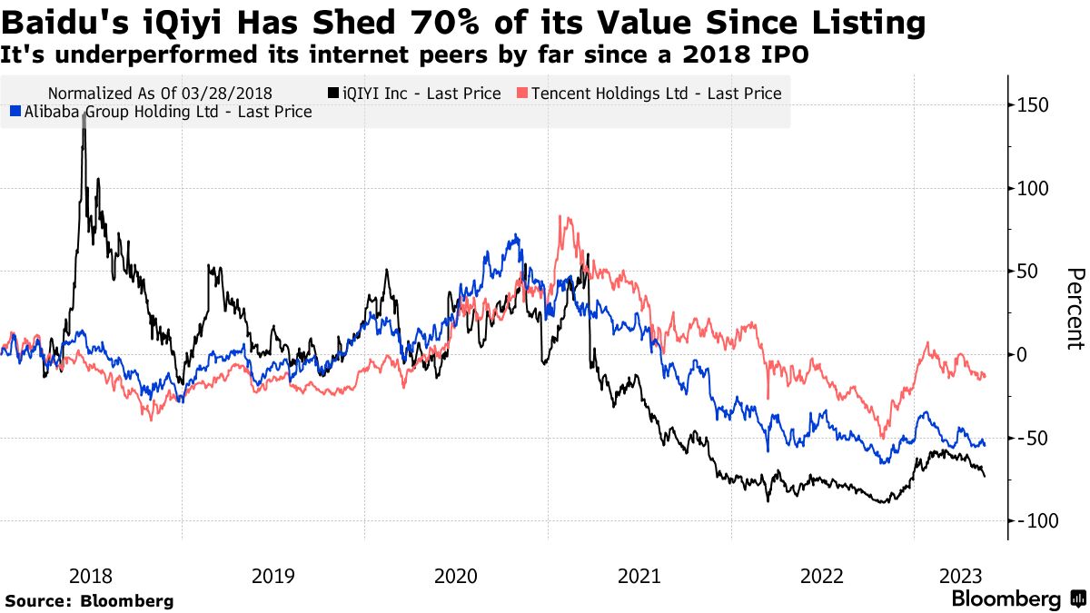 说服一些投资者可能会有挑战。自2018年在美国上市以来,爱奇艺已经损失了大约70%的价值,这是北京在2020年和2021年对互联网行业进行全面打击引发的科技抛售的牺牲品。这次打击还加剧了长期存在的审查制度,这一制度困扰着中国所有内容平台,这要归功于一个不容许在线异议的执政党。