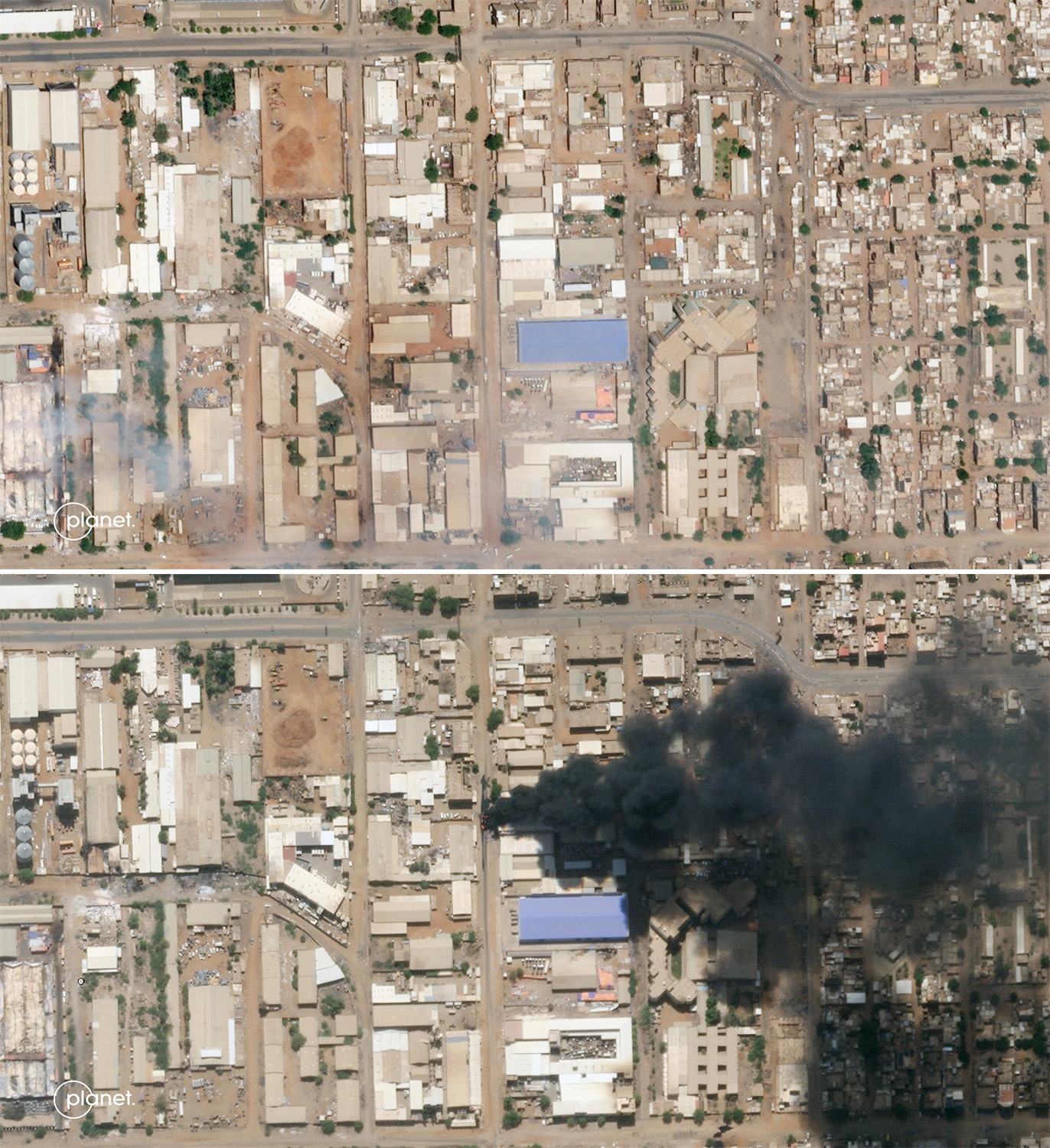 5月10日,卫星图像显示,该国最大的婴儿食品制造商Samil Industrial Co.遭到洗劫并被烧毁。4月爆发战斗后不久,北达尔富尔埃尔法舍尔镇附近的食品市场被摧毁。