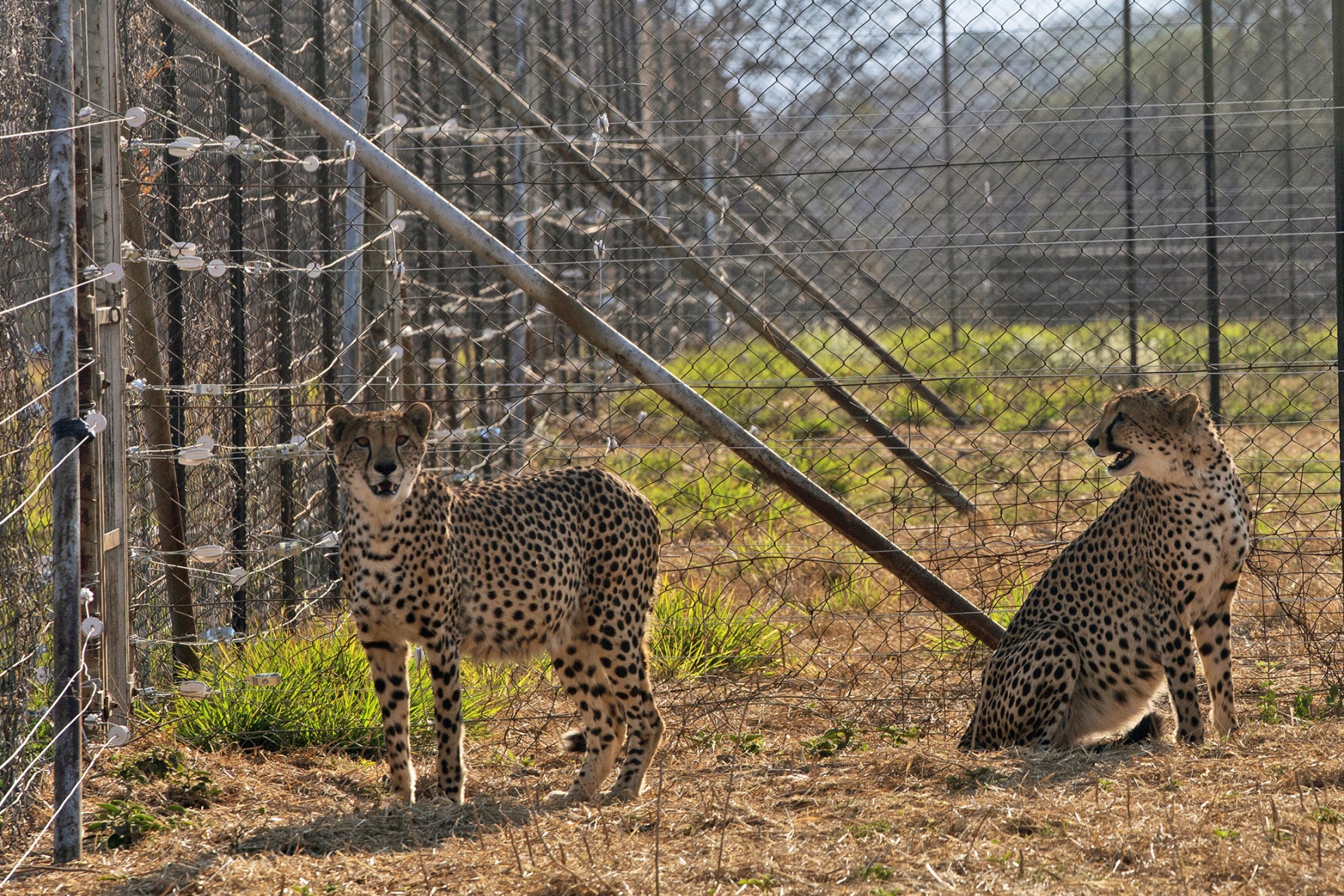 三只在被转移到印度之前在隔离区内的猎豹。