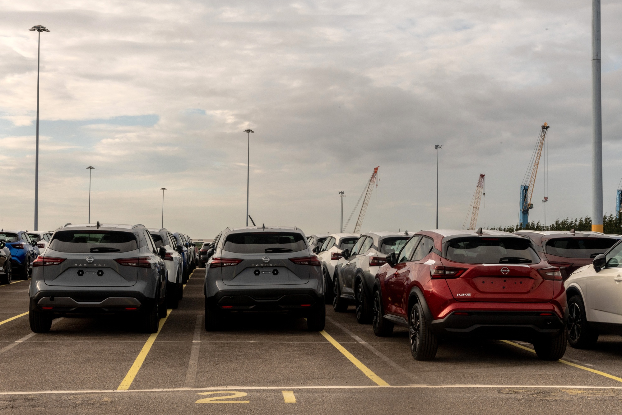 日产汽车在南希尔兹泰恩港准备出口。摄影师:乔安妮·科茨/彭博