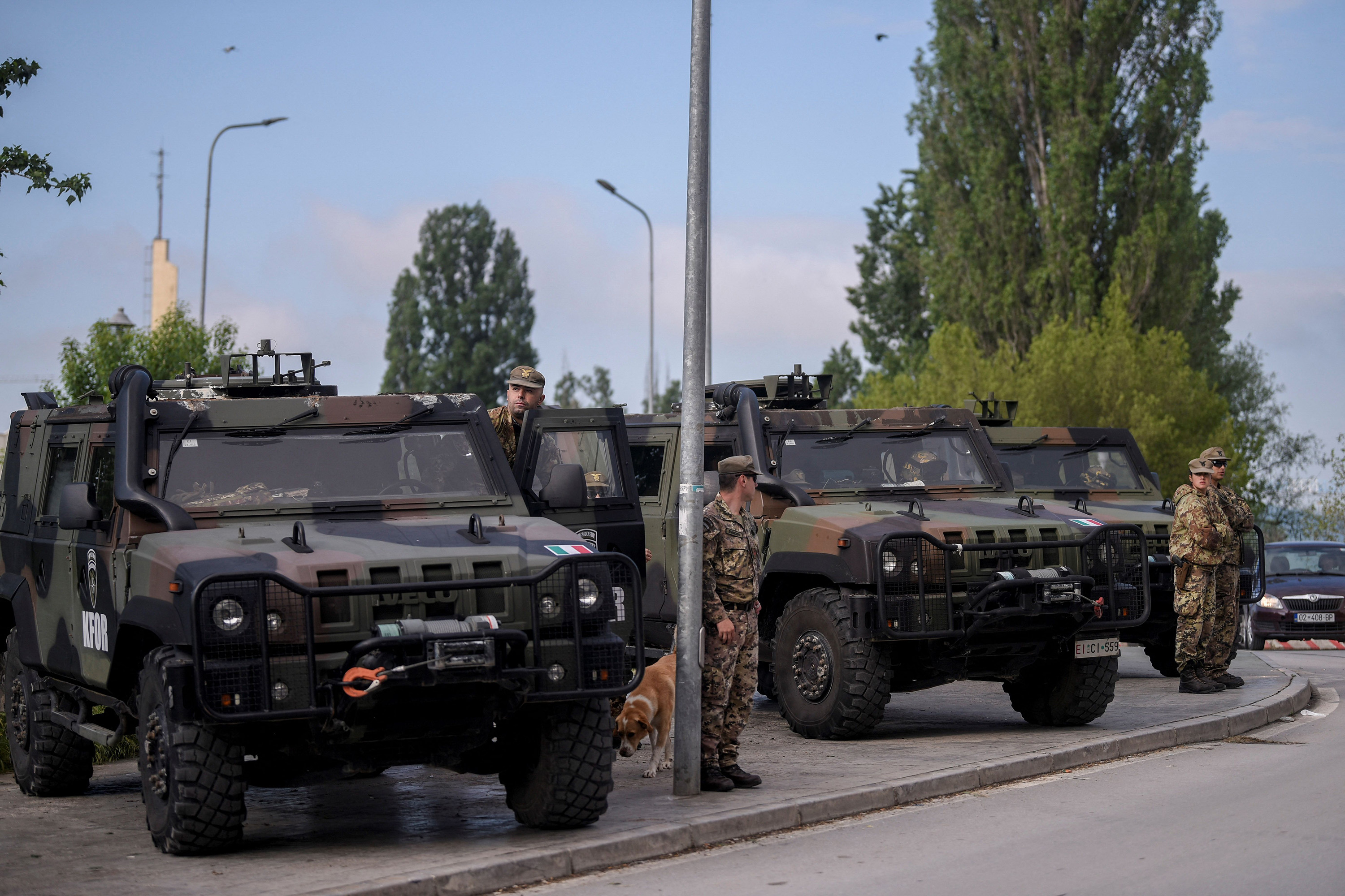 NATO士兵在科索沃的米托罗维察站岗,5月29日。