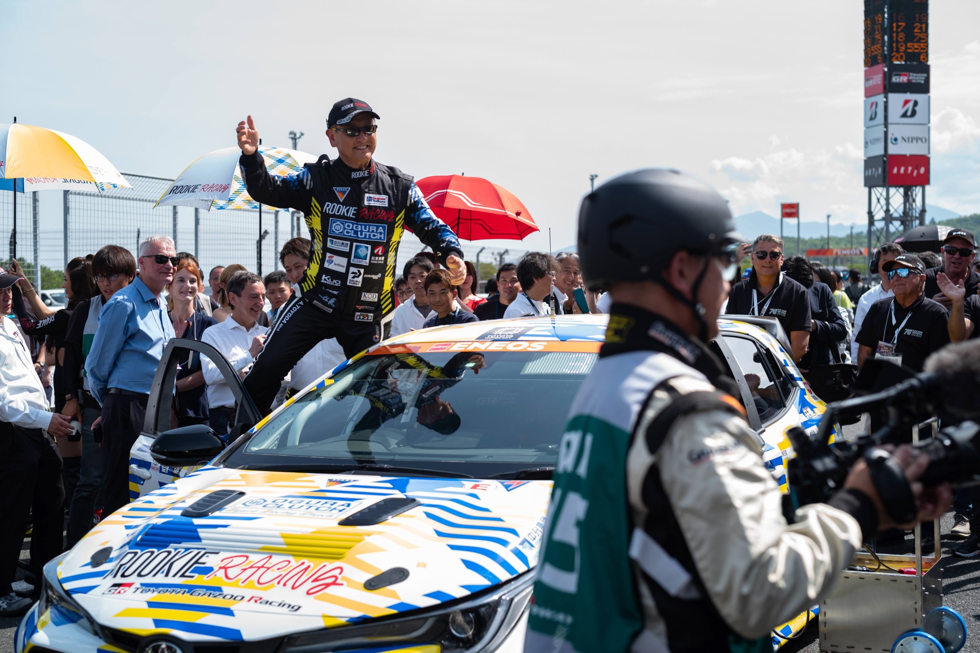 丰田董事长丰田章男在爬上液氢动力卡罗拉之前为观众们加油助威。摄影师:Nicholas Takahashi/Bloomberg卡罗拉H2概念车原定于三月首次亮相,但由于发动机舱内的氢气泄漏引发火灾而被推迟。周日,在丰田董事长丰田章男爬上驾驶座,周围充满兴奋的粉丝和好奇的记者时,它跨过了终点线。