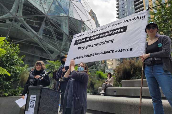 这次抗议活动由亚马逊员工倡导气候正义组织和亚马逊远程倡导小组组织,在公司西雅图总部举行。