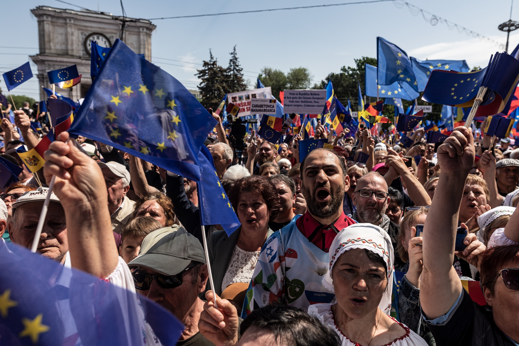 5月21日,摩尔多瓦基希讷乌举行支持加入欧盟的集会。摄影师:迭戈·埃雷拉·卡塞多/安纳多卢/盖蒂图片社莫斯科一再否认干涉摩尔多瓦事务,但在德涅斯特河流域驻扎了超过1,000名军队,西方军事分析人士称这对摩尔多瓦的稳定和乌克兰东部的安全构成风险。桑杜在二月份援引乌克兰提供的情报称俄罗斯试图推翻她的政府。