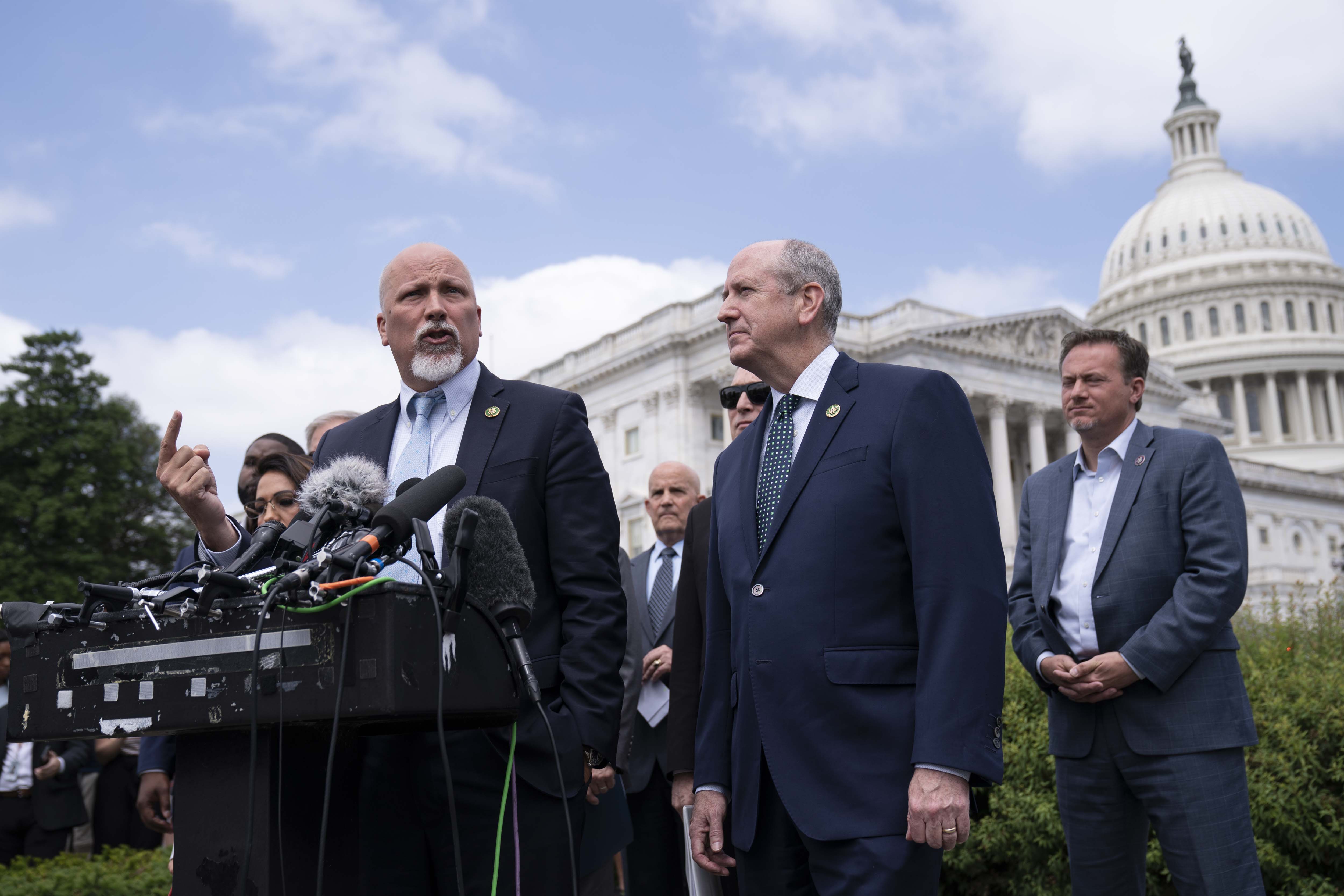 Chip Roy,左,5月30日在自由派议员团新闻发布会上发言。摄影师:Sarah Silbiger/Bloomberg美国洞察:债务协议将让每个人都不满意 - 原因在这里