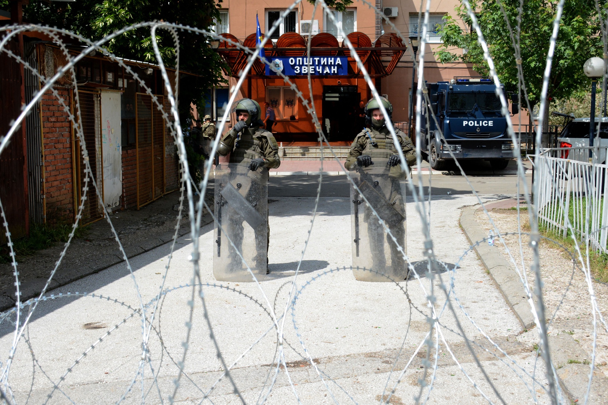 KFOR维和部队5月31日在科索沃北部兹韦恰恩戴着防暴装备。来源:法新社/盖蒂图片社科索沃十年来发生的最严重暴力事件暴露了这个地区在宣布独立15年后仍处于不确定状态的政治僵局,这是一个一触即发的火药桶。