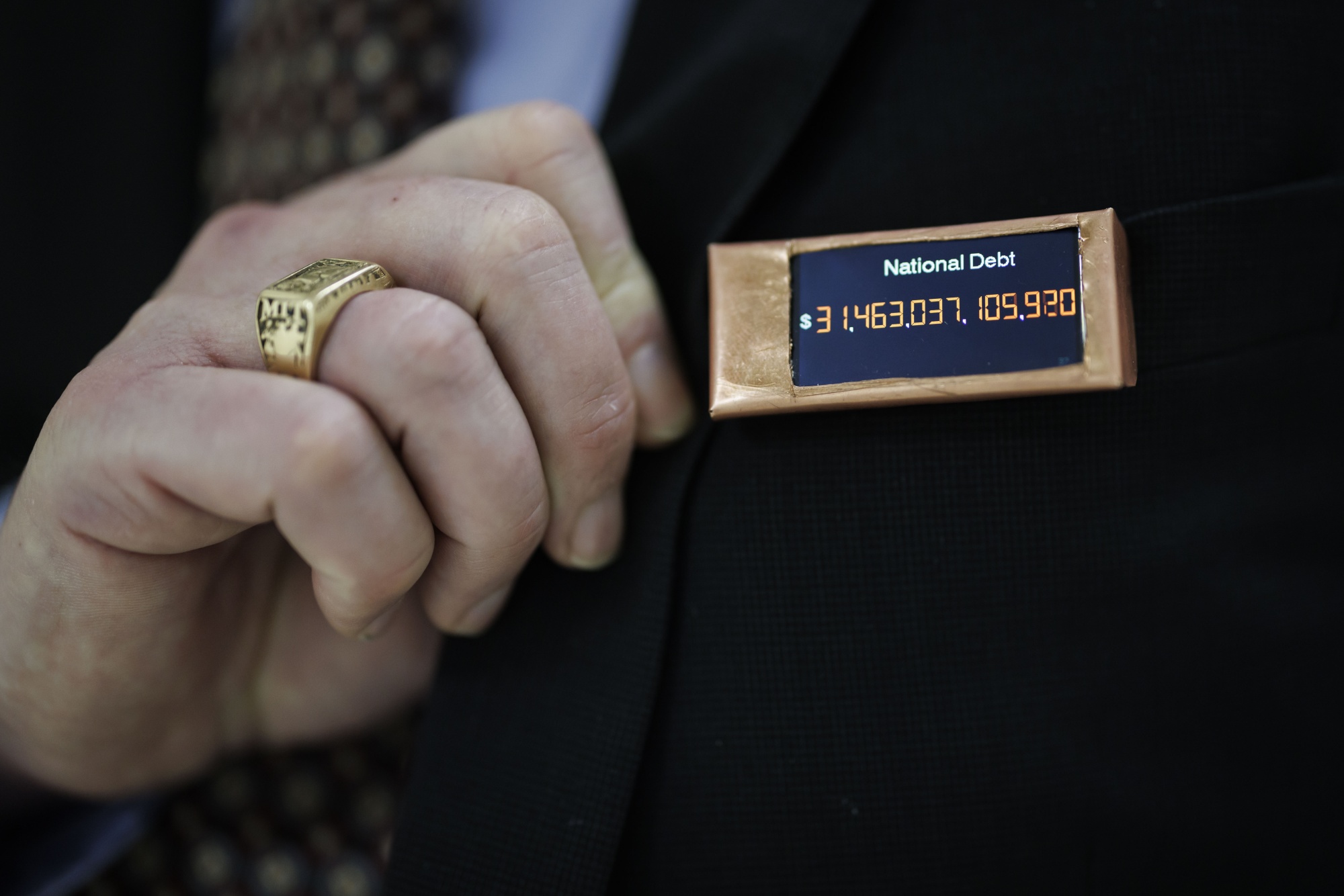 来自肯塔基州的保守派议员托马斯·马西,佩戴着一个手工制作的国债数字计数徽章,周二投下了一票关键的选票,以通过立法从众议院一个关键委员会。