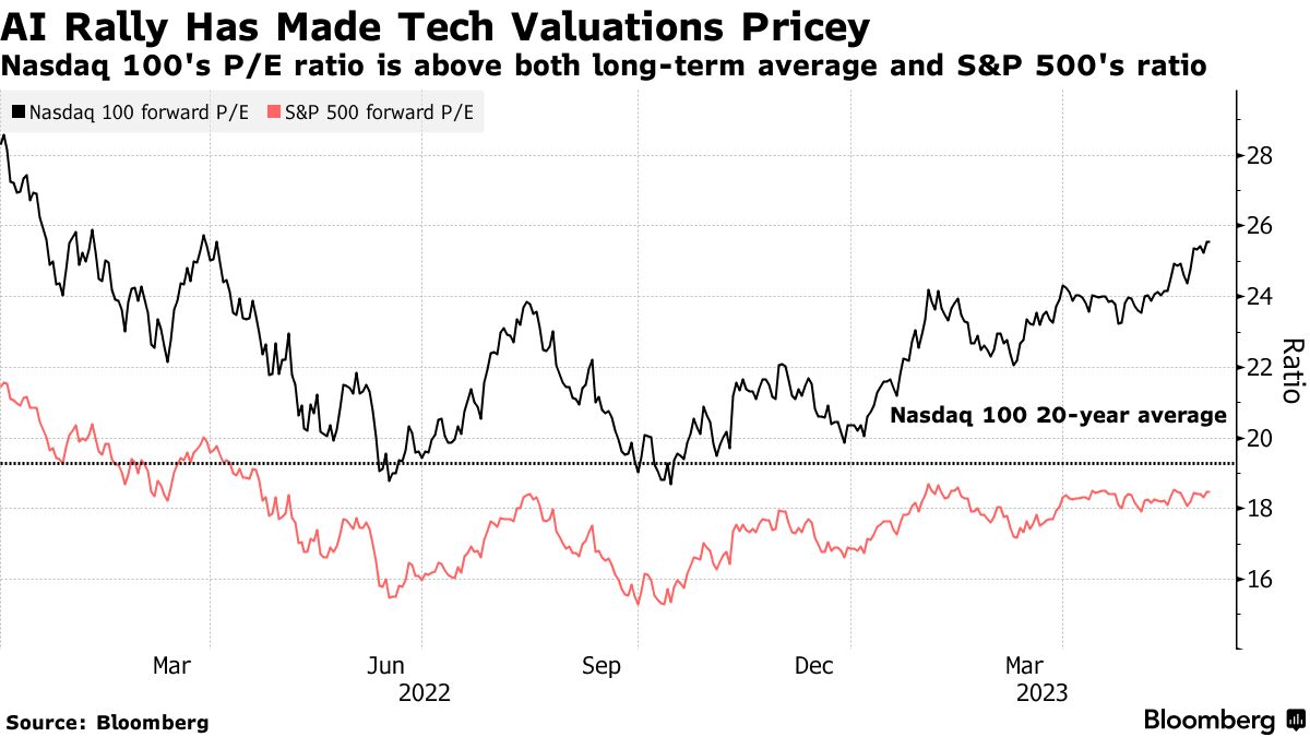 围绕人工智能的热潮推动了纳斯达克100指数创下2005年以来最佳的五月回报,科技股在标普500指数中击败其他行业集团的幅度创下历史新高。该行业还受益于市场对美联储将停止加息的押注。