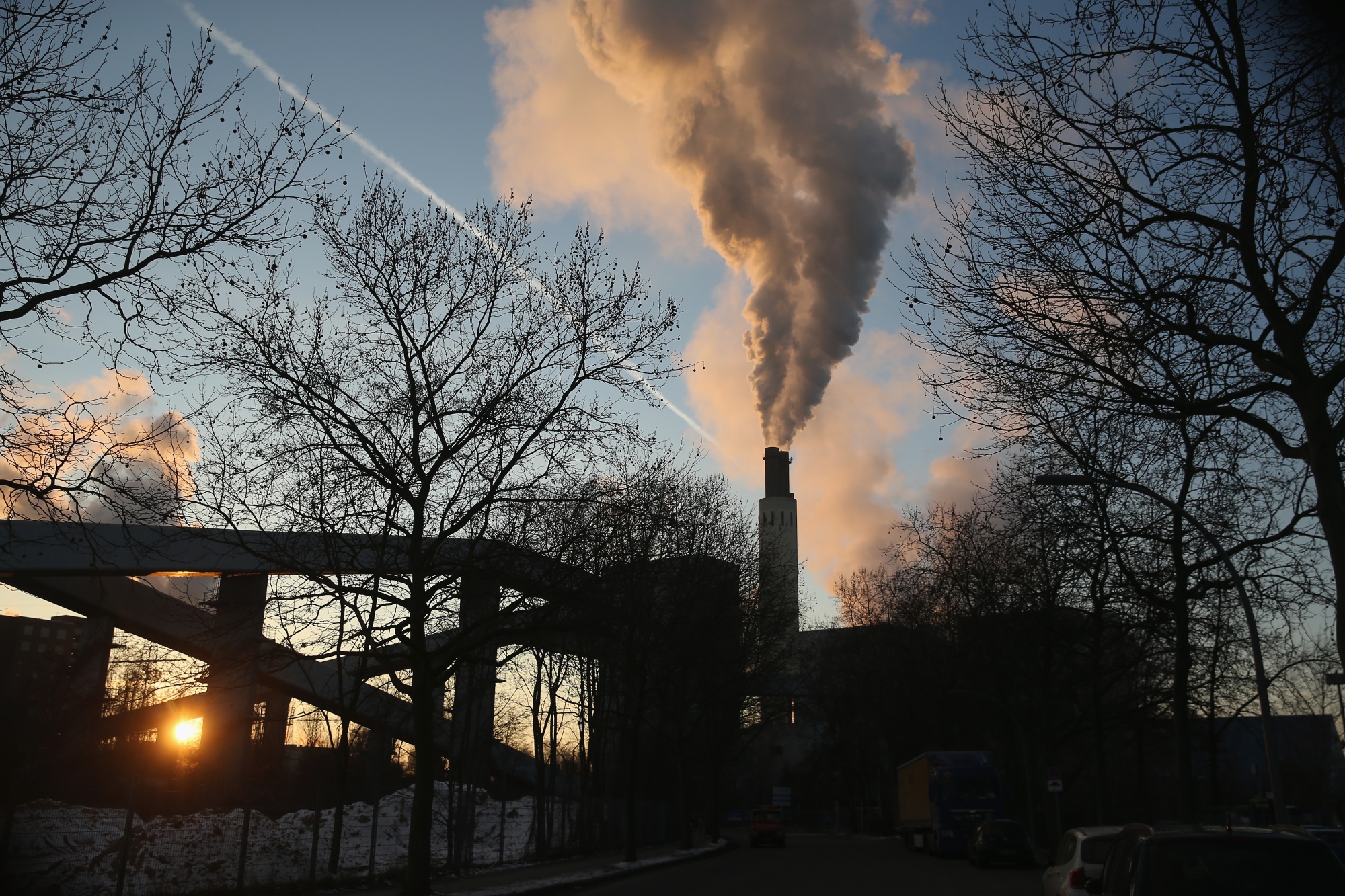 从柏林的一座燃煤发电和供暖厂升起的蒸汽和烟雾。