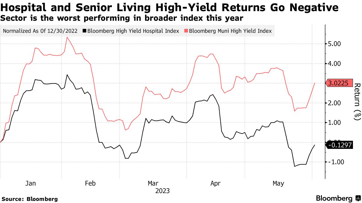 医疗保健债务,包括老年生活设施,在2023年高收益市政债券中表现最差,亏损0.13%,是唯一的负回报。