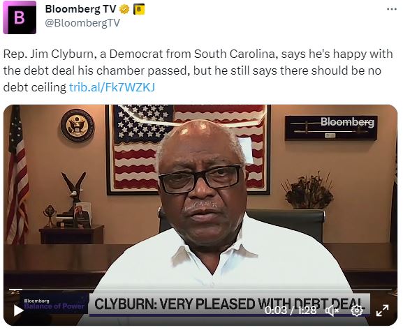 在彭博电视台的*权力平衡**节目中,*主持人安玛丽·霍登和乔·马修采访了白宫经济顾问吉恩·斯佩林,以及关于经济最新民意调查的讨论。在昨天的节目中,助理民主党领袖吉姆·克莱本议员表示,立法者应该完全取消债务上限。