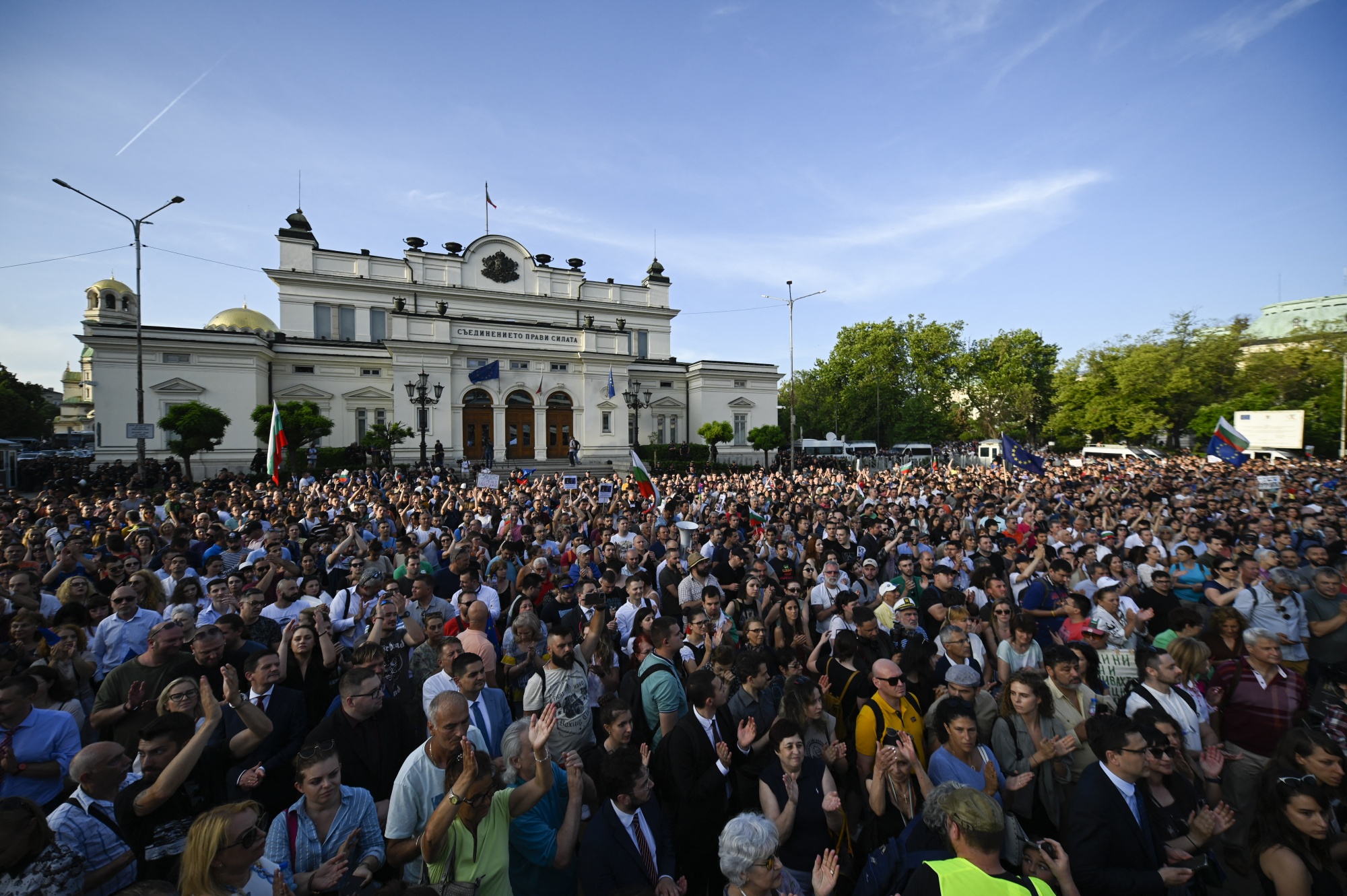 2022年6月,索非亚保加利亚议会前举行支持政府的示威活动。