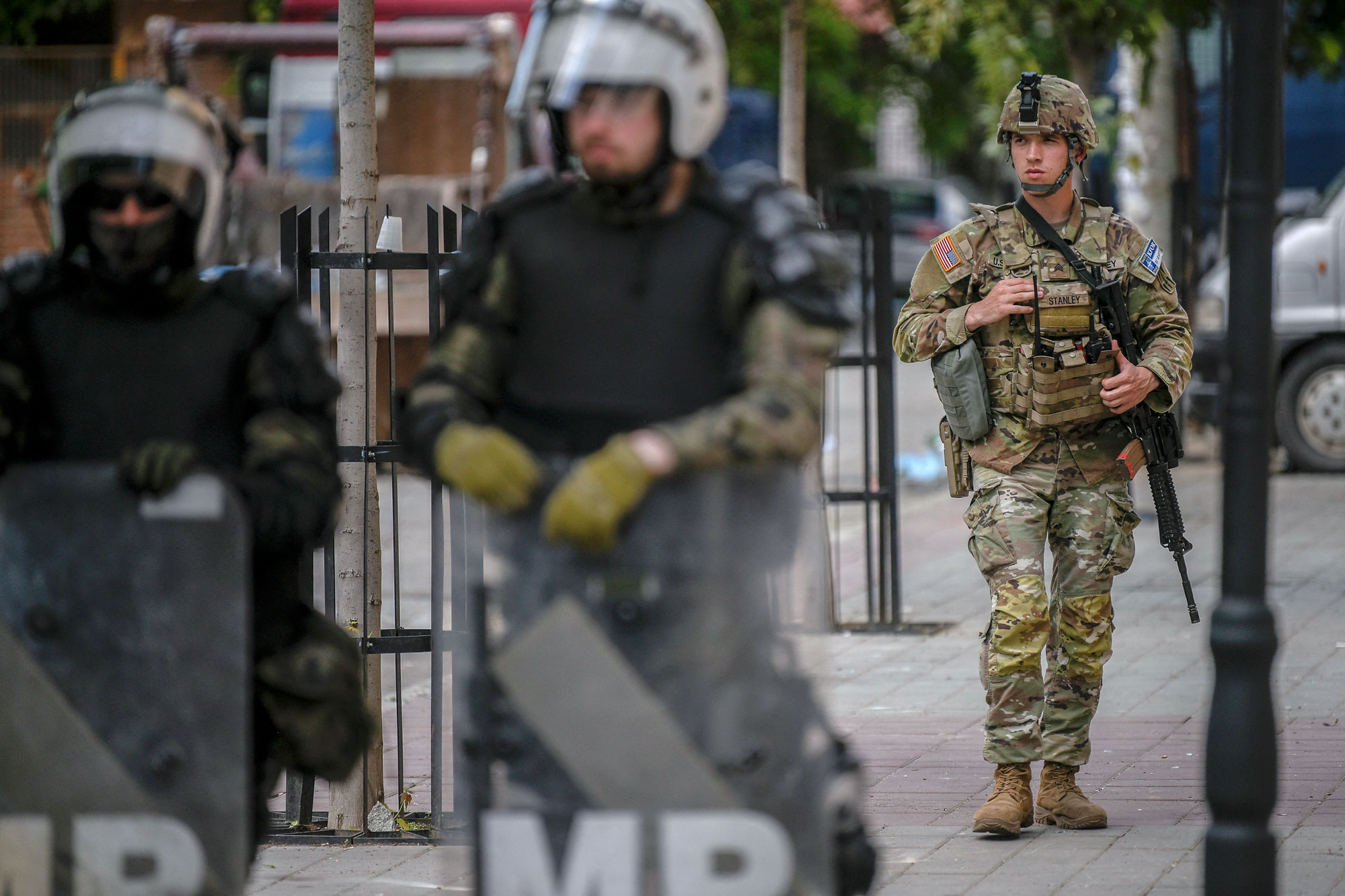 KFOR维和部队在科索沃北部兹韦恰尼附近,5月30日。摄影师:Armend Nimani/AFP/Getty Images欧洲领导人向科索沃和塞尔维亚提出了一份明确的任务清单,以结束十年来最严重的暴力爆发,称他们必须缓解紧张局势,否则将面临严重后果。