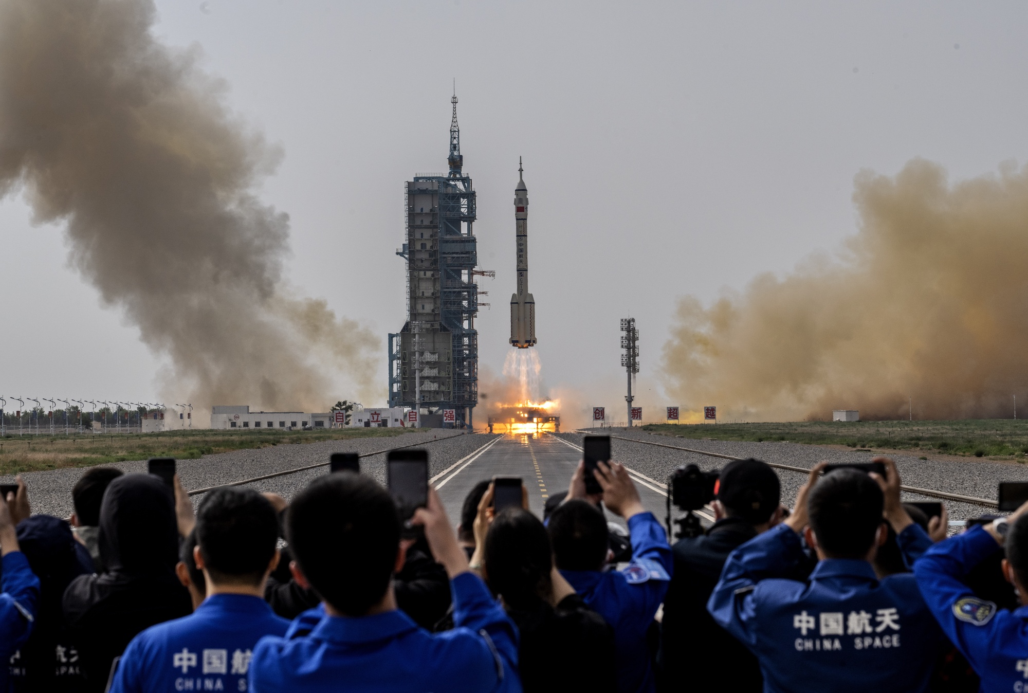 最后 … 中国的神舟16号任务从戈壁深处发射,将三名宇航员送往中国空间站。这次发射标志着中国的第11次载人任务,缩小了与美国在太空竞赛中的差距,展示了该计划的进展,而华盛顿正试图阻止北京发展先进产业。中国计划在2030年前将宇航员送上月球。